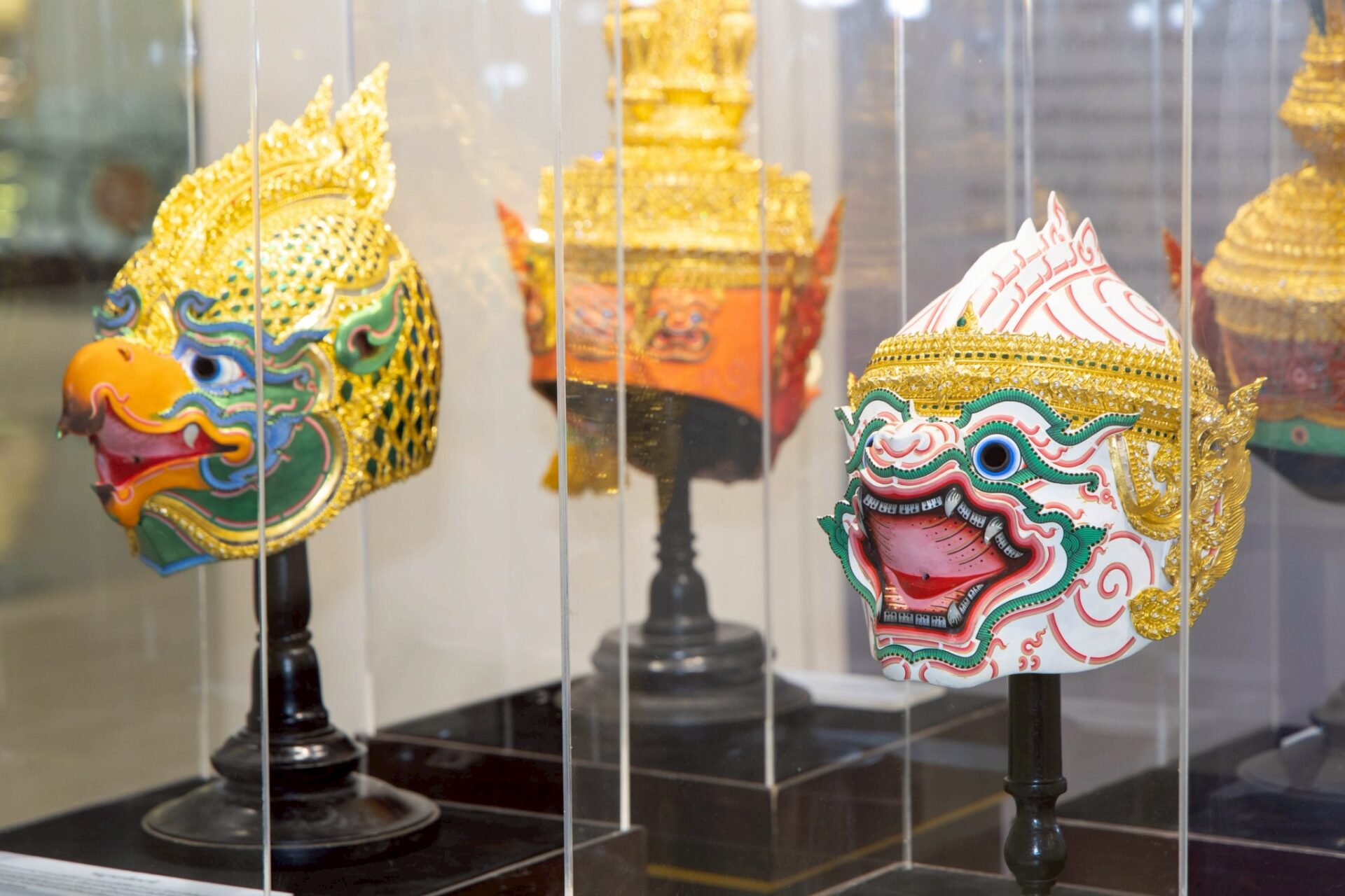 ส่วนการจัดแสดงหัวโขน เชิญหัวโขนจากอาคารเรียน-รู้-เรื่องโขน ที่หาชมได้ยากมาจัดแสดง 4 หัว ได้แก่ พิเภก หนุมาน อากาศตะไล และพญานกสัมภาที การอนุรักษ์โขนคือพระราชกรณียกิจสำคัญ โปรดเกล้าฯ พระราชทานทรัพย์ส่วนพระองค์แก่กรมศิลปากรนำไปปรับปรุงเครื่องแต่งกายโขน ปีพ.ศ.2546 จากนั้นทรงให้การสนับสนุนโขนเรื่อยมา ในปี พ.ศ.2550 มีการแสดงโขนโดยมูลนิธิส่งเสริมศิลปาชีพฯ ครั้งแรก ตอน “พรหมาศ” พระราชกรณียกิจการฟื้นฟูโขนพลิกฟื้นงานฝีมือช่างหัตถศิลป์ไทยหลายสาขา โดยองค์การยูเนสโกขึ้นทะเบียนการแสดงโขนของไทยเป็นรายการตัวแทนมรดกทางวัฒนธรรมที่จับต้องไม่ได้ ประเภท “รายการตัวแทนมรดกทางวัฒนธรรมของมนุษยชาติ” รายการแรกของไทย