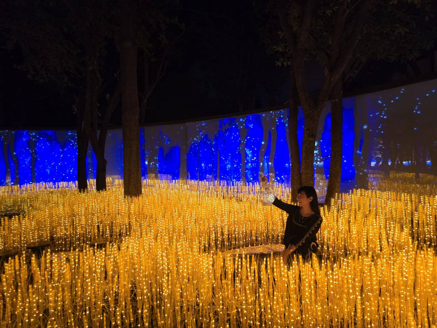 ปีนี้การเที่ยวชมงานแสงไฟที่ ณ สัทธา สนุกขึ้นกว่าทุกครั้ง เพราะทางอุทยานได้ออกแบบโซนใหม่ถึง 8 โซน พร้อมปรับดีไซน์อีกหลายพื้นที่ให้ไม่ซ้ำกับปีที่ผ่านมา ทำให้ตลอดเส้นทางการเดินชม เหมือนได้เปิดประสบการณ์ใหม่ในทุกก้าวราวกับกำลังท่องไปในดินแดนที่เปลี่ยนฉากไปเรื่อยๆ และการผจญภัยในค่ำคืนนี้ขอเริ่มต้นที่ โซน 3 Rice Memory รวงข้าว แผ่นดินทอง เมื่อเดินเข้าไป คุณจะได้พบกับแทงไฟเรียวยาวสีทองที่ถูกจัดเรียงและมัดรวมกันให้ดูคล้าย รวงข้าวสุกปลั่ง ที่เปล่งประกายท่ามกลางความมืด ภาพตรงหน้าไม่เพียงสวยงาม แต่ยังเปี่ยมด้วยความหมาย รวงข้าวแต่ละรวงเปรียบเสมือนผู้คนที่อยู่ร่วมกันอย่างสงบสุข เจริญรุ่งเรืองในผืนแผ่นดินที่อุดมสมบูรณ์ด้วยทรัพยากรธรรมชาติ