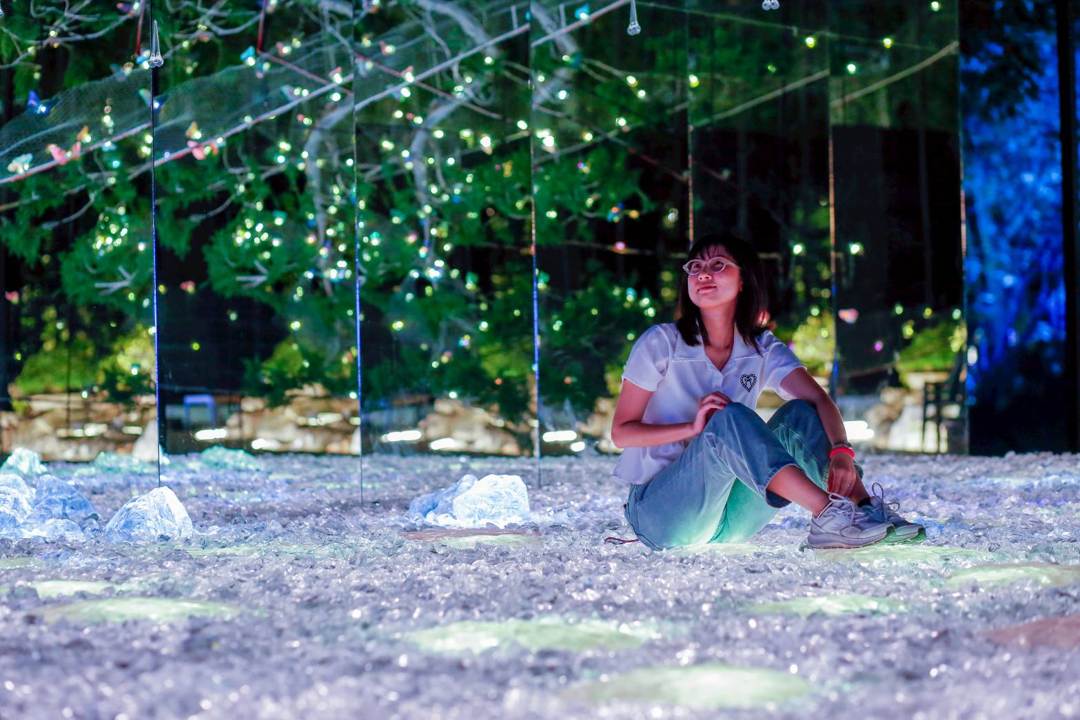 ระยิบระยับกับโซน 20 Crystal Melody ท่วงทำนองและผลึกแสง เมื่อก้าวเข้ามาเราจะได้สัมผัสกับหินคริสตัลหลากสีที่เรืองแสงระยิบระยับราวกับมีชีวิต ทุกก้อนหินเหมือนกำลังขับขานเพลงอันไพเราะ ผสมผสานกับเสียงดนตรีที่สะท้อนความงดงามอย่างลงตัว ทำให้ทุกย่างก้าวเหมือนเรากำลังเดินอยู่ท่ามกลางท่วงทำนองของแสงและเสียง ติดกันคือ โซน 21 Life – Spiral – Transformation ชีวิต การผันเปลี่ยน และการเกิดใหม่ เส้นทางเดินทอดผ่านต้นไม้ที่ปลายยอดคว่ำลง เหล่าผีเสือบินรายล้อมราวกับกำลังพาเราเข้าไปสำรวจความลับของธรรมชาติ โซนนี้ได้แรงบันดาลใจจากคติทางพระพุทธศาสนาเรื่อง ทุกสิ่งเป็นอนัตตา ไม่มีสิ่งใดคงอยู่เป็นนิรันดร์ ทุกสิ่งล้วนเปลี่ยนแปลง เมื่อเราเข้าใจวัฏจักรความเสื่อมของชีวิต ก็สามารถมองเห็นหนทางสู่ความเบิกบานและการหลุดพ้น