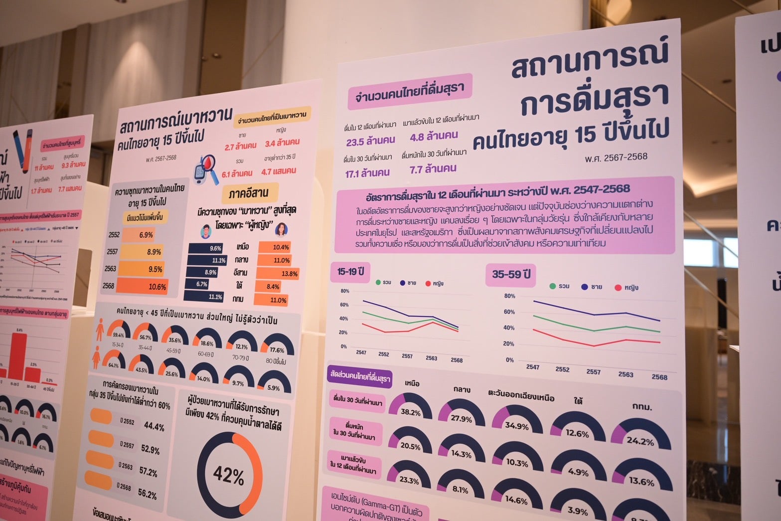 นพ.พงศ์เทพ วงศ์วัชรไพบูลย์ ผู้จัดการกองทุน สสส. กล่าวว่า สสส. ได้นำข้อมูลจากการสำรวจฯ นี้มาวิเคราะห์ร่วมกับฐานข้อมูลสุขภาพอื่น ๆ ของประเทศ เช่น ข้อมูลการป่วยและการเสียชีวิต เพื่อนำไปพัฒนาดัชนีภาระโรค (Burden of Diseases) และคะแนนสุขภาพประชาชน (Health Score) สะท้อนสถานะสุขภาพของประชาชนไทย ทั้งโรคไม่ติดต่อ (NCDs) พฤติกรรมสุขภาพ และความเสี่ยงเชิงสิ่งแวดล้อม เช่น การวิเคราะห์พบว่า ผู้ที่ดื่มสุราระดับเสี่ยงมีค่าเอนไซม์ตับสูงกว่าคนทั่วไป 3-5 เท่า สะท้อนความเสี่ยงต่อโรคตับแข็งและมะเร็งตับอย่างมีนัยสำคัญ ทำให้สามารถกำหนดกลยุทธ์การรณรงค์ลดการดื่มสุราได้ตรงจุดมากขึ้น เป็นพลังสำคัญของการสร้างเสริมสุขภาพยุคใหม่ เพราะจะทำให้มองเห็นปัญหาเชิงพื้นที่ได้แม่นยำขึ้น ติดตามผลได้ชัดเจนขึ้น และออกแบบนโยบายที่ตอบโจทย์ประชาชนได้จริง