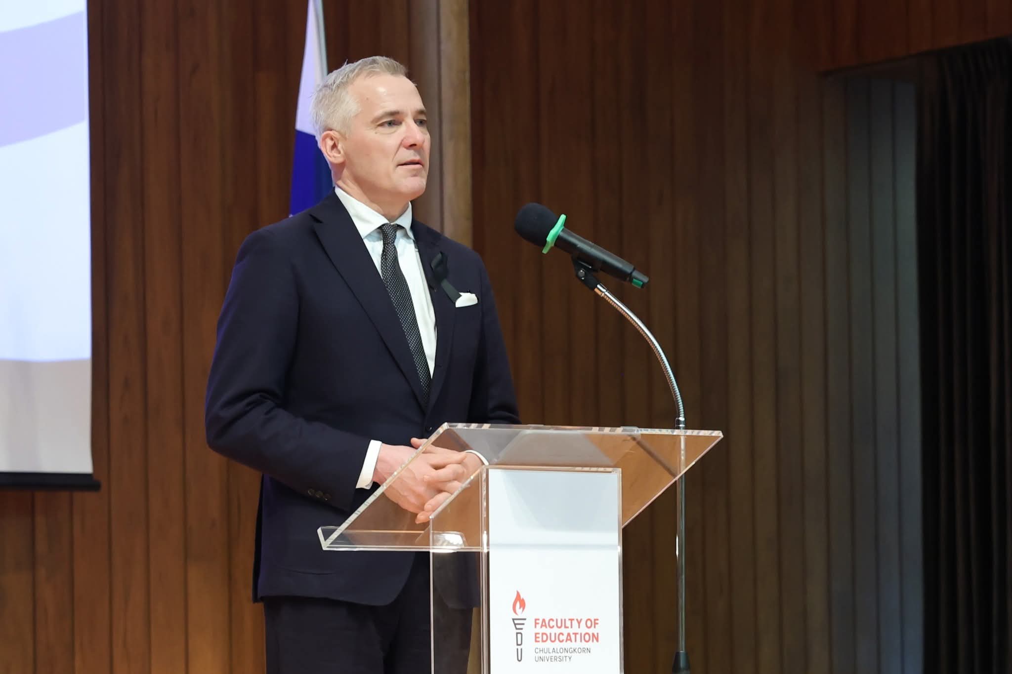 เพื่อแลกเปลี่ยนแนวคิดและสร้างความร่วมมือในการพัฒนาการศึกษาไทย จุฬาลงกรณ์มหาวิทยาลัย ร่วมกับสถานเอกอัครราชทูตฟินแลนด์ประจำประเทศไทย จัดการบรรยายพิเศษหัวข้อ “The School of The Future and Its Success Factors” (โรงเรียนแห่งอนาคตและปัจจัยสู่ความสำเร็จ) โดย อานเดอร์ส อัดเลอร์เคริทซ์ (Anders Adlercreutz) รัฐมนตรีว่าการกระทรวงศึกษาธิการสาธารณรัฐฟินแลนด์ นำเสนอแนวทางการพัฒนาการศึกษาเพื่อสร้างระบบที่เอื้อต่อศักยภาพและความสุขของผู้เรียนในอนาคต