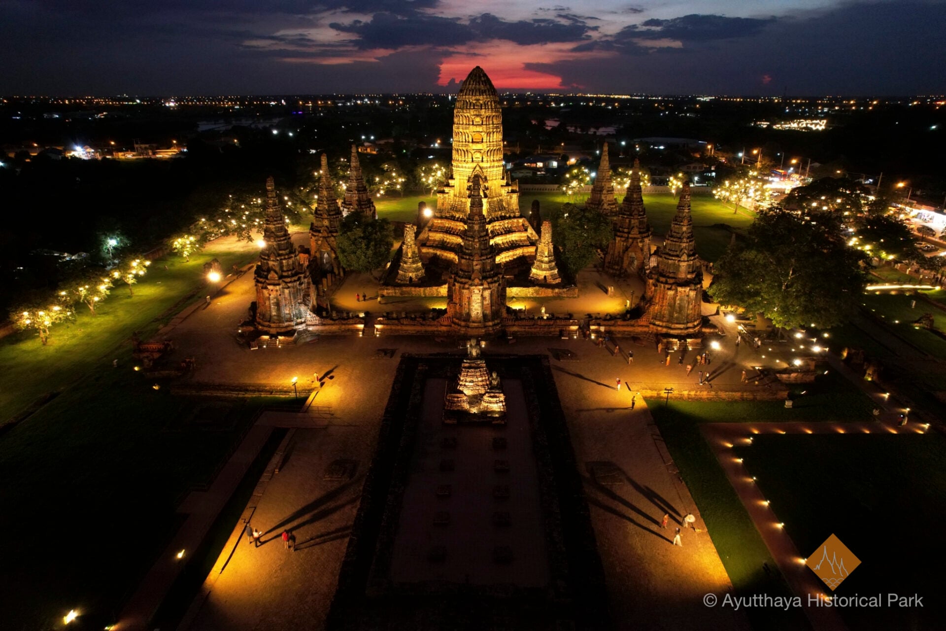 นอกจากโบราณสถานทั้ง 3 แห่งที่ประดับประดาไฟอย่างงดงามยังมีอีกหลายจุดหมายที่น่าไปชม การได้มาเที่ยวยามค่ำคืนก็เป็นอีกประสบการณ์ที่งดงาม ชวนให้เดินเพลินๆ โดยเปิดให้ประชาชนเข้าชมตั้งแต่เวลา 16.30 น. – 21.30 น. ทุกวันศุกร์ – อาทิตย์ และวันหยุดนักขัตฤกษ์ จนถึงเดือนกุมภาพันธ์ 2569 นอกจากนี้ที่วัดไชยวัฒนาราม ยังมีกิจกรรมการแสดงทางวัฒนธรรม อาทิ การละเล่นไทยโบราณ การลอยประทีป ตลาดโบราณนานาชาติ การแสดงโขน การประกวดแมวไทย