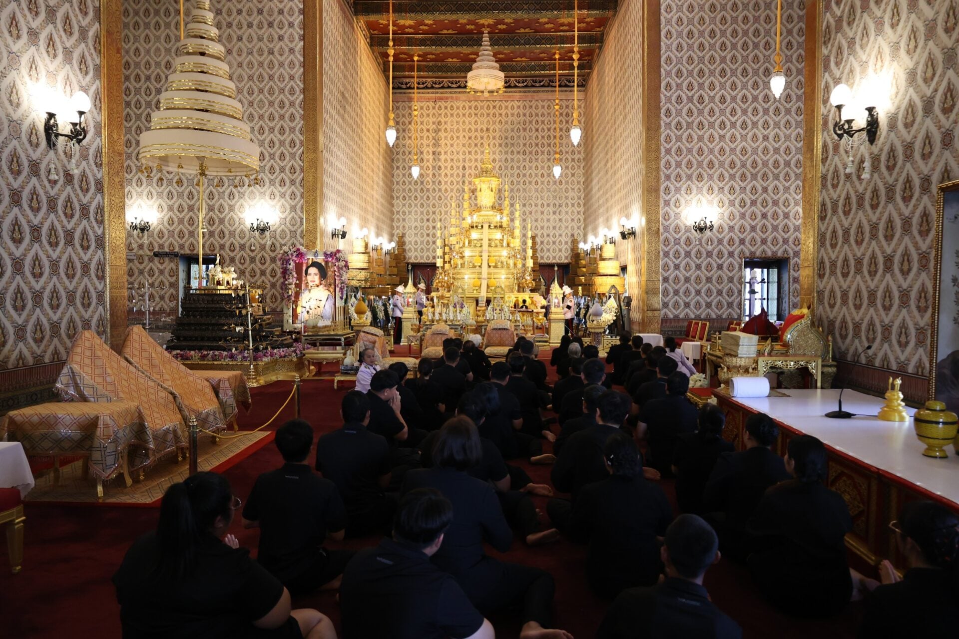 9 ธ.ค.2568 เวลา 07.15 น. สมเด็จพระกนิษฐาธิราชเจ้า กรมสมเด็จพระเทพรัตนราชสุดาฯ สยามบรมราชกุมารี เสด็จพระราชดำเนินไปถวายภัตตาหารเช้าแด่พระสงฆ์ที่มาสวดพระอภิธรรมในงานพระบรมศพ สมเด็จพระนางเจ้าสิริกิติ์ พระบรมราชินีนาถ พระบรมราชชนนีพันปีหลวง ณ พระที่นั่งดุสิตมหาปราสาท ในพระบรมมหาราชวัง ต่อมาเวลา 19.00 น. ม.จ.ฑิฆัมพร ยุคล เสด็จไปในการพิธีบำเพ็ญพระราชกุศลพระบรมศพสมเด็จพระนางเจ้าสิริกิติ์ พระบรมราชินีนาถ พระบรมราชชนนีพันปีหลวง ณ พระที่นั่งดุสิตมหาปราสาท พระบรมมหาราชวั