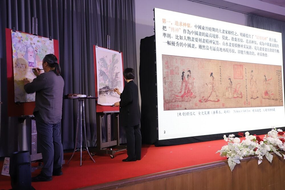 หลิว ว่านหมิง ผอ.สถาบันศิลปกรรมแห่งชาติจีน แนะนำการชมจิตรกรรมจีนให้ได้อรรถรสว่า จิตรกรรมจีนมีเอกลักษณ์ ประการแรกภาพวาดจีนเน้นให้ถึงจิตวิญญาณของสิ่งที่วาด ไม่ว่าจะคนทิวทัศน์ นกน้อย ดอกไม้ ใบหญ้า แม้ไม่สมจริงแต่กลับมีชีวิตชีวาอย่างยิ่ง อย่างภาพอาชาคู่สำราญ ที่จัดแสดงสื่อให้เห็นถึงจิตวิญญาณของภาพ เอกลักษณ์ต่อมาแสดงฉากทัศน์จากมุมมองของศิลปินจีนที่เกิดจากการสังเกต เข้าใจ และประสบการณ์ในการวาด ถ่ายทอดเป็นเส้นสายกลายเป็นภาพที่ตรึงตราผู้ชม เอกลักษณ์ที่สาม ภาพวาดจีน เน้นสื่อนัยยะที่ลึกซึ้ง อย่างภาพ วิจิตรที่จะ ผลงานอดีตผอ. สถาบันศิลปกรรมจีนได้อิทธิพลจากปรัชญาลัทธิเต๋าว่าสิ่งนามธรรมเป็นรูปธรรมมองเห็นได้ด้วยตาสื่อนัยยะที่ลึกซึ้งตามแนวเคารพจิตรกรรมจีน เอกลักษณ์ที่สี่ ไร้ข้อจำกัดด้านเวลาและพื้นที่ อย่างภาพขุนเขาหรือภาพแม่น้ำ ใช้ชั้นเชิงศิลปะเหนือกาลเวลา พื้นที่ นำสิ่งที่อยู่คนละช่วงเวลา รวมไว้ด้วยกัน เป็นความกล้าหาญในการสร้างสรรค์ศิลปะของศิลปินจีน