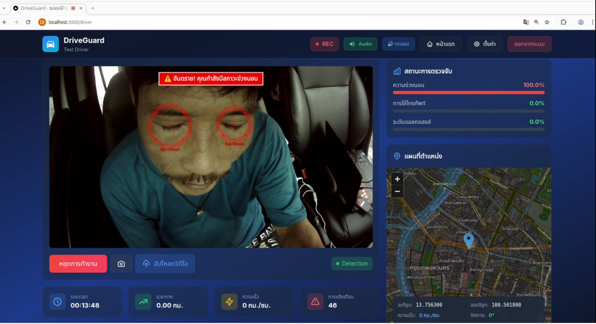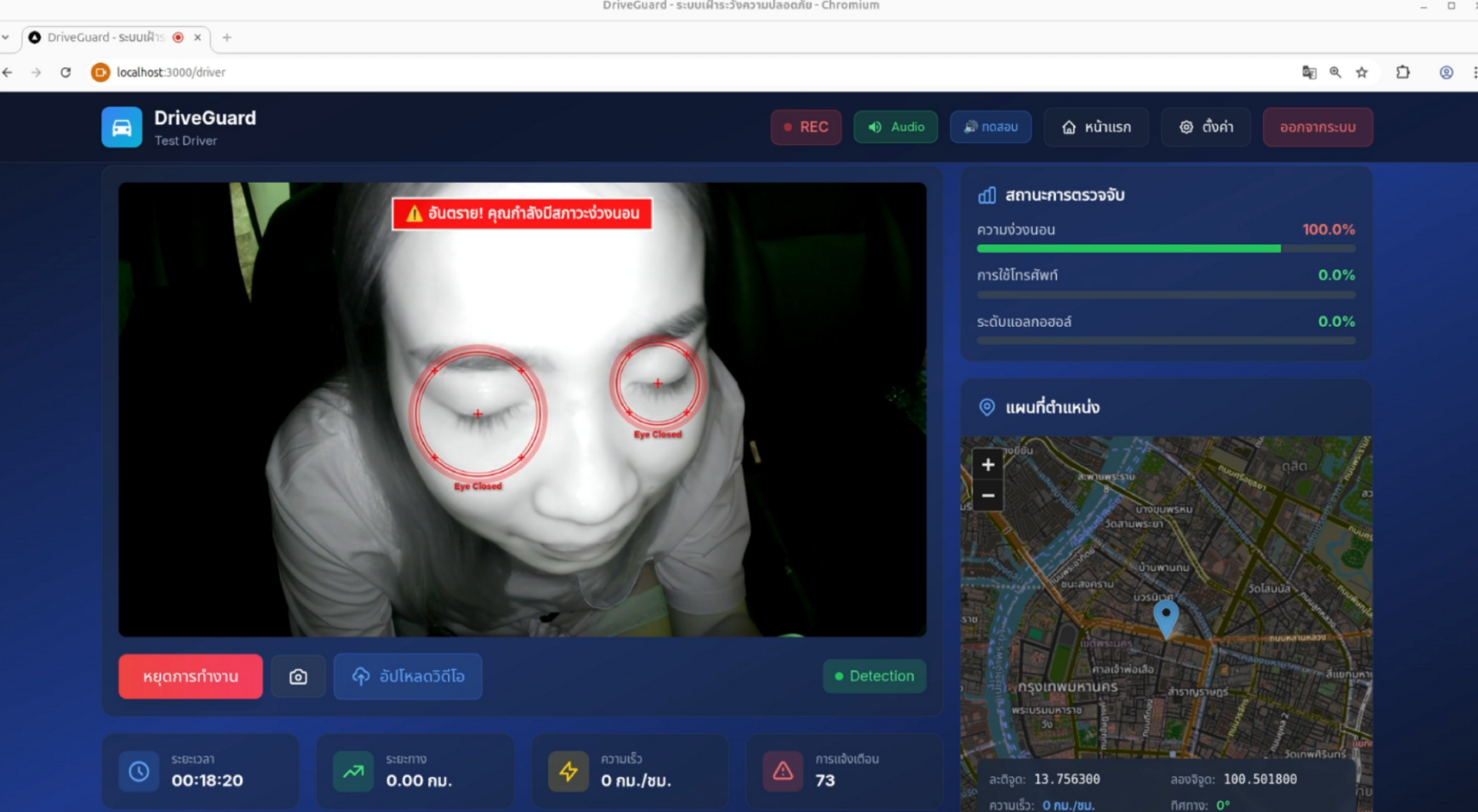 ทุกวันมีคนตายบนท้องถนนเพียงเพราะหลับใน ในระยะเวลาสั้นๆ ไม่ถึง 10 วินาที ง่วงแล้วฝืนขับรถ จนเกิดอุบัติเหตุ ทำให้บาดเจ็บสาหัสหรือตายคาที่ คนขับรถส่วนใหญ่มักไม่รู้ว่าตัวเองมีความง่วง อีกสาเหตุใช้มือถือ เล่นเกมส์ ท่องเว็ปไซต์ พิมพ์ข้อความขณะขับรถเสี่ยงตายไม่แพ้กัน ซึ่งเป็นความสูญเสียที่ไม่มีใครอยากให้เกิดขึ้น ปัญหานี้กระทบใจจุดประกายให้เกิดการพัฒนา ”DriveGuard “ ระบบเฝ้าระวังการขับขี่อัจฉริยะ โดยใช้เทคโนโลยี AI และ ระบบ IoT ตรวจจับหลับใน ตรวจจับโทรศัพท์ วัดแอลกอฮอล์ และตรวจสอบความเร็ว นวัตกรรมขับขี่ปลอดภัยนี้พิชิตรางวัลชนะเลิศการประกวดนวัตกรรมสร้างเสริมสุขภาพ “Prime Minister’s Award for Health Promotion Innovation 2025” จัดโดยสำนักงานกองทุนสนับสนุนการสร้างเสริมสุขภาพ (สสส.)