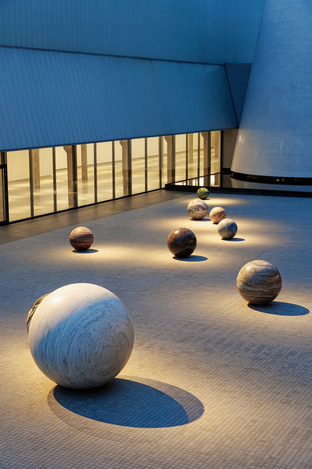 งานจัดแสดงยังขยายออกไปภายนอกอาคาร พลิกโฉมภูมิทัศน์โดยรอบให้เป็นส่วนหนึ่งของ ประสบการณ์ศิลปะ กลางลานเด่นด้วยศิลปะจัดวาง Pars pro Toto (2020) โดย อลิเชีย ควาเด ประกอบด้วยลูกโลกหินมหึมา 11 ลูก ชวนผู้ชมไตร่ตรองเชิงกวีถึง ระบบดาวเคราะห์และแก่นสารแห่งวัตถุ บนระเบียงชั้นบนเป็นที่ตั้งผลงาน Breast Stupa Topiary (2013) ของพินรี สัณฑ์พิทักษ์ ประติมากรรมสแตนเลสรูปทรงคล้ายเจดีย์ทรวงอก ชวนให้ครุ่นคิดถึงความเป็นหญิง จิตวิญญาณและร่างกาย งานชิ้นนี้ลดทอนเส้นสายแข็งกระด้างของเมืองด้วยการปรากฏตัวที่อ่อนโยนและลุ่มลึก