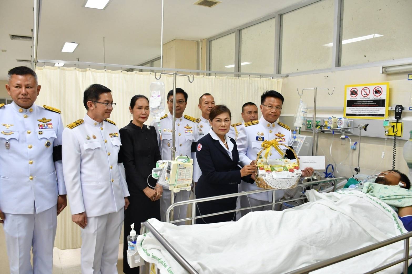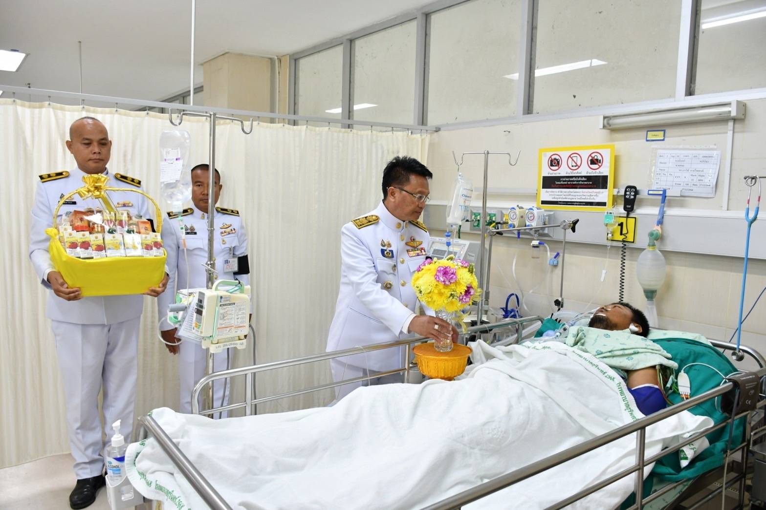 ในหลวงโปรดเกล้าฯ รองผู้ว่าฯ สุรินทร์ เชิญดอกไม้-ตะกร้าสิ่งของพระราชทานมอบแก่กำลังพลบาดเจ็บสู้รบชายแดนไทย-กัมพูชา ณ รพ.ปราสาท และ รพ.สุรินทร์