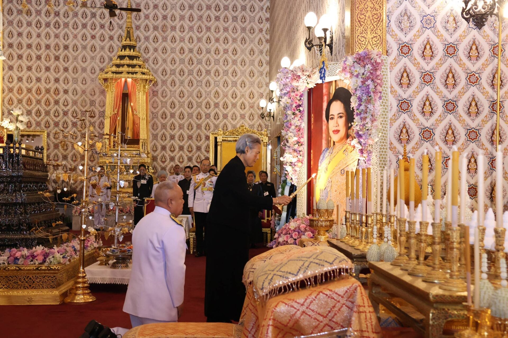 วันที่ 31 ธันวาคม 2568 เวลา 07.45 น. สมเด็จพระกนิษฐาธิราชเจ้า กรมสมเด็จพระเทพรัตนราชสุดาฯ สยามบรมราชกุมารี เสด็จทรงบำเพ็ญพระราชกุศลถวายภัตตาหารเช้า แด่พระพิธีธรรม ที่สวดพระอภิธรรมพระบรมศพสมเด็จพระนางเจ้าสิริกิติ์ พระบรมราชินีนาถ พระบรมราชชนนีพันปีหลวง ในพระบรมมหาราชวัง