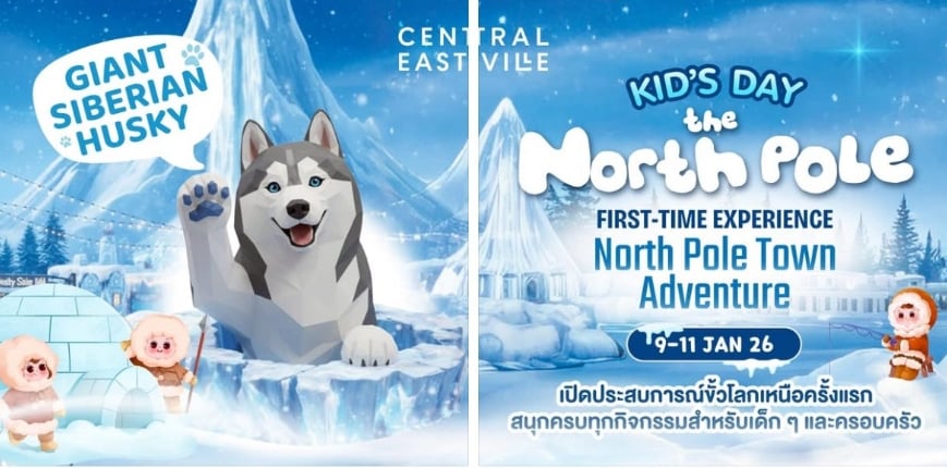 เซ็นทรัล อีสวิลล์ ชวนน้องๆมาเปิดประสบการณ์ขั้วโลกเหนือครั้งแรก และสนุกกับทุกกิจกรรมสำหรับเด็กๆ และครอบครัว ไฮไลต์กิจกรรมภายในงาน ได้แก่ Ice Hockey Club เปิดสนามความมันส์กับเกมฮอกกี้สุดเร้าใจ, Ice Fishing Game สนุกกับเกมตกปลาบนน้ำแข็ง ลุ้นและเพลินไปพร้อมกัน,Giant Siberian Husky ให้เด็กๆ ได้สัมผัสและถ่ายรูปอย่างใกล้ชิด, Snow Town Play เปิดประสบการณ์เมืองหิมะ เติมความสุข สนุกเพลิน เหมือนได้ไปผจญภัยที่ขั้วโลกเหนือจริงๆ และ Siberian Husky Club ในวันที่ 11 มกราคม 2569 เวลา 14.00 น. เป็นการนัดรวมแก๊งขนฟูสุดคูลพร้อมมาแจกความน่ารักสดใสให้เด็กๆ และครอบครัวและยังมี POLAR PLAYLAND ถึง 11 มกราคม 2569 สถานที่ ณ Sky Park ชั้น 3 3rd Floor อีสต์วิลล์