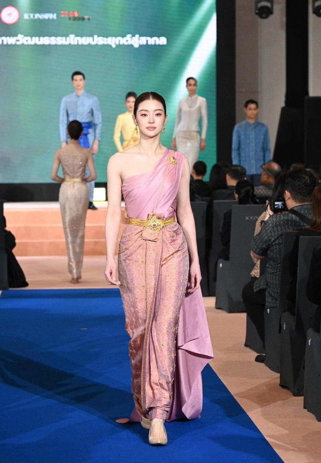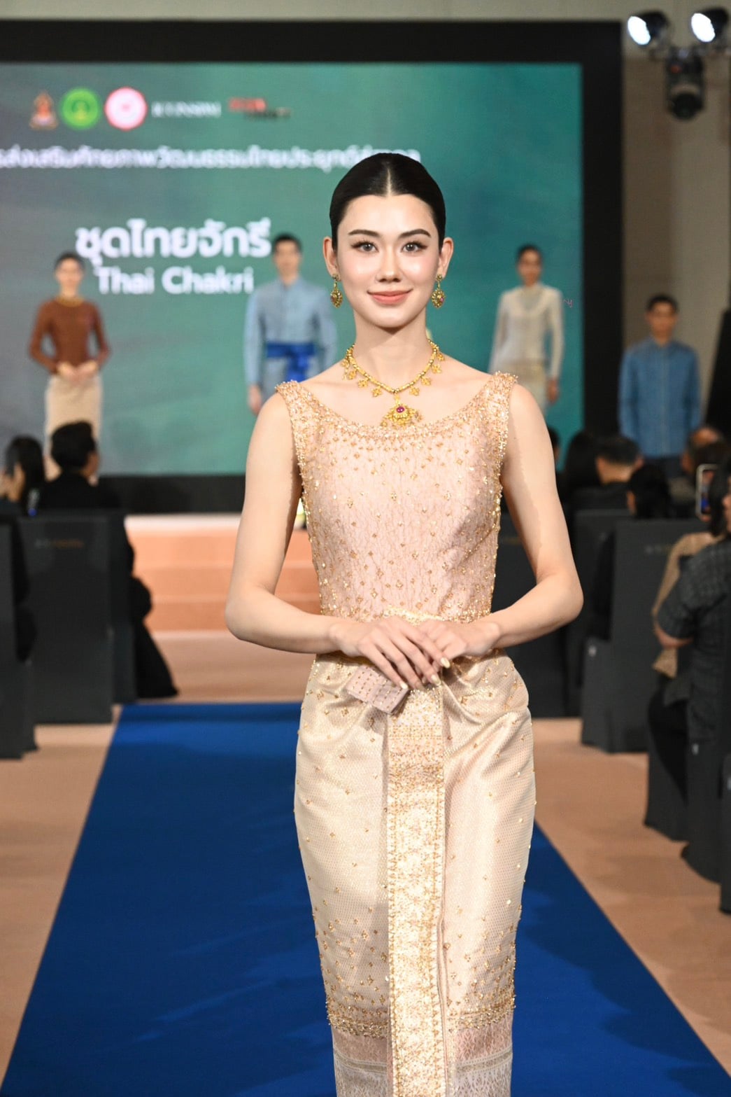 เพื่อการเตรียมความพร้อมรองรับการพิจารณาขึ้นทะเบียน “ชุดไทยพระราชนิยม” กรมส่งเสริมวัฒนธรรม กระทรวงวัฒนธรรม ร่วมกับศูนย์บริการวิชาการ มหาวิทยาลัยศรีนครินทรวิโรฒ จัดการแสดงแฟชั่นโชว์เดินแบบชุดไทยพระราชนิยม 8 แบบ มรดกแห่งสมเด็จพระนางเจ้าสิริกิติ์ พระบรมราชินีนาถ พระบรมราชชนนีพันปีหลวง ที่ไอคอนสยาม ลีน่า ลลินา ชูเอ็ทท์ ในชุดไทยดุสิตสง่างาม หมิว ณัชชา เตชะมงคลาภิวัฒน์ สวมชุดไทยจักรี กชเบล ศรัณย์รัชต์ เผือกพิพัฒน์ มิสแกรนด์ ไทยแลนด์ 2025 สง่างามในชุดไทยจักรพรรดิ