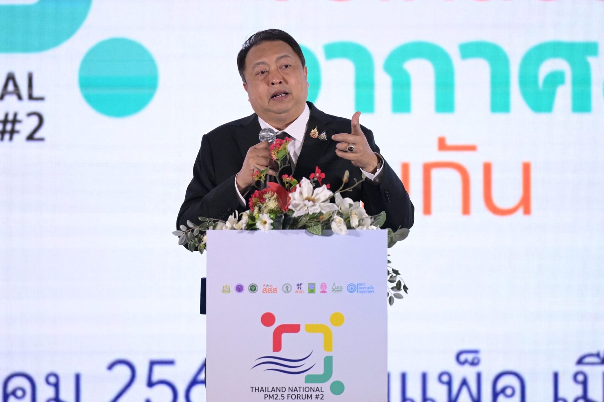 นายสุชาติ ชมกลิ่น รองนายกรัฐมนตรีและรัฐมนตรีว่าการกระทรวงทรัพยากรธรรมชาติและสิ่งแวดล้อม กล่าวว่า ปัญหาฝุ่น PM 2.5 เป็นมลพิษทางอากาศที่สำคัญที่สุดและเป็นปัญหาสิ่งแวดล้อมเชิงโครงสร้างที่มีความซับซ้อน เชื่อมโยงกับรูปแบบการใช้ทรัพยากร การเผาในที่โล่ง ภาคเกษตรและป่าไม้ การขยายตัวของเมือง การคมนาคมขนส่ง ภาคอุตสาหกรรม ตลอดจนมลพิษข้ามพรมแดน ส่งผลกระทบต่อระบบนิเวศ สิ่งแวดล้อม และสุขภาพของประชาชน มีพิษภัยร้ายแรงคล้ายโควิดที่ทำให้เกิดโรคระบบทางเดินหายใจ การแก้ปัญหา PM 2.5 ไม่อาจจำกัดแค่รับมือเฉพาะในหน้าช่วงวิกฤต แต่จำเป็นต้องมุ่งสู่การจัดการเชิงระบบในระยะยาว ตั้งแต่การควบคุมและลดแหล่งกำเนิดมลพิษ การฟื้นฟูและปกป้องทรัพยากรธรรมชาติ การกำกับดูแลกิจกรรมที่ส่งผลกระทบต่อสิ่งแวดล้อม ไปจนถึงการนำข้อมูล วิทยาศาสตร์ และเทคโนโลยีมาใช้สนับสนุนการตัดสินใจเชิงนโยบายอย่างมีประสิทธิภาพ