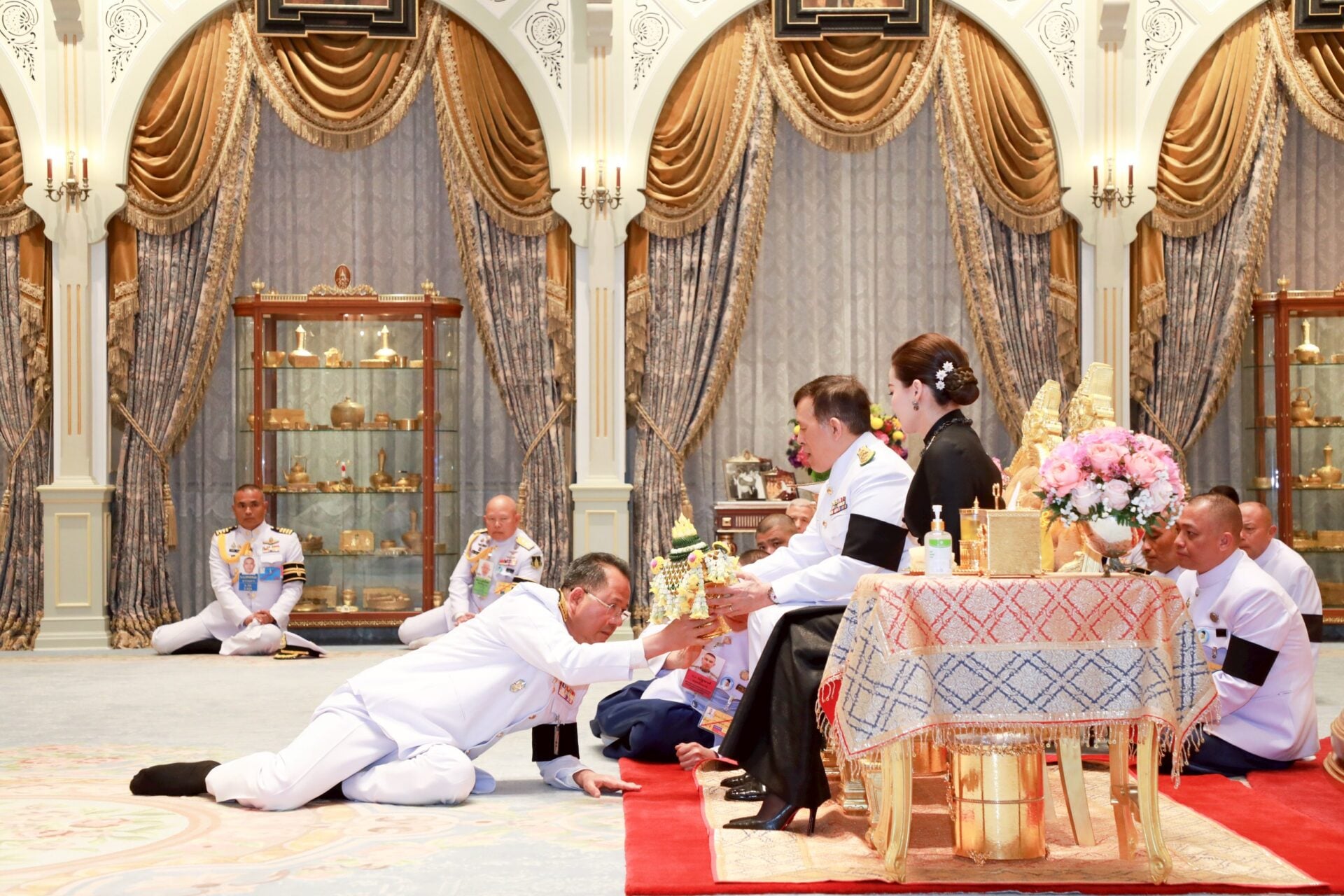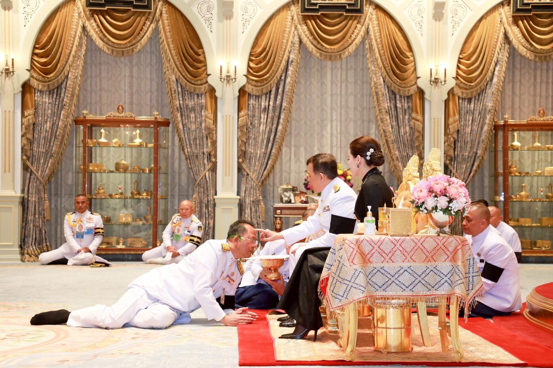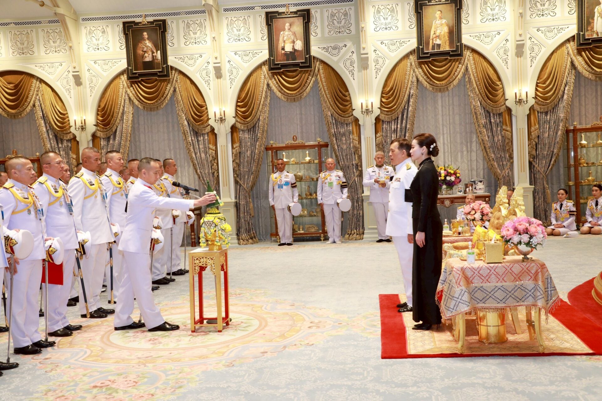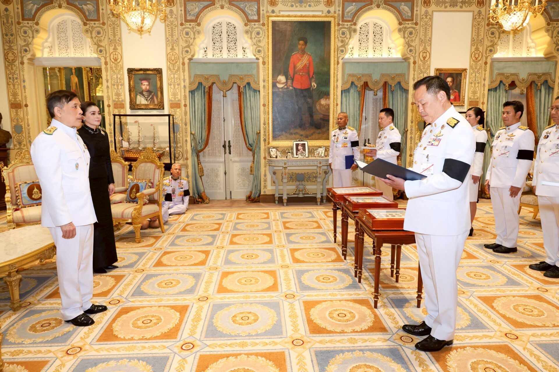 เวลา 18.17 น. พลเอก ณัฐพล นาคพาณิชย์ รัฐมนตรีว่าการกระทรวงกลาโหม นำตุลาการศาลทหารสูงสุด ตุลาการศาลทหารกลาง และตุลาการพระธรรมนูญศาลทหารชั้นต้น เฝ้าทูลละอองธุลีพระบาท ถวายสัตย์ปฏิญาณก่อนเข้ารับหน้าที่ ในโอกาสนี้ พลเอก พุฒิพงษ์ ชีพสมุทร เจ้ากรมพระธรรมนูญ และพลโท พัฒนชัย พัฒนเจริญ หัวหน้าสำนักตุลาการทหารและตุลาการพระธรรมนูญหัวหน้าศาลทหารสูงสุด ร่วมเข้าเฝ้าทูลละอองธุลีพระบาทด้วย