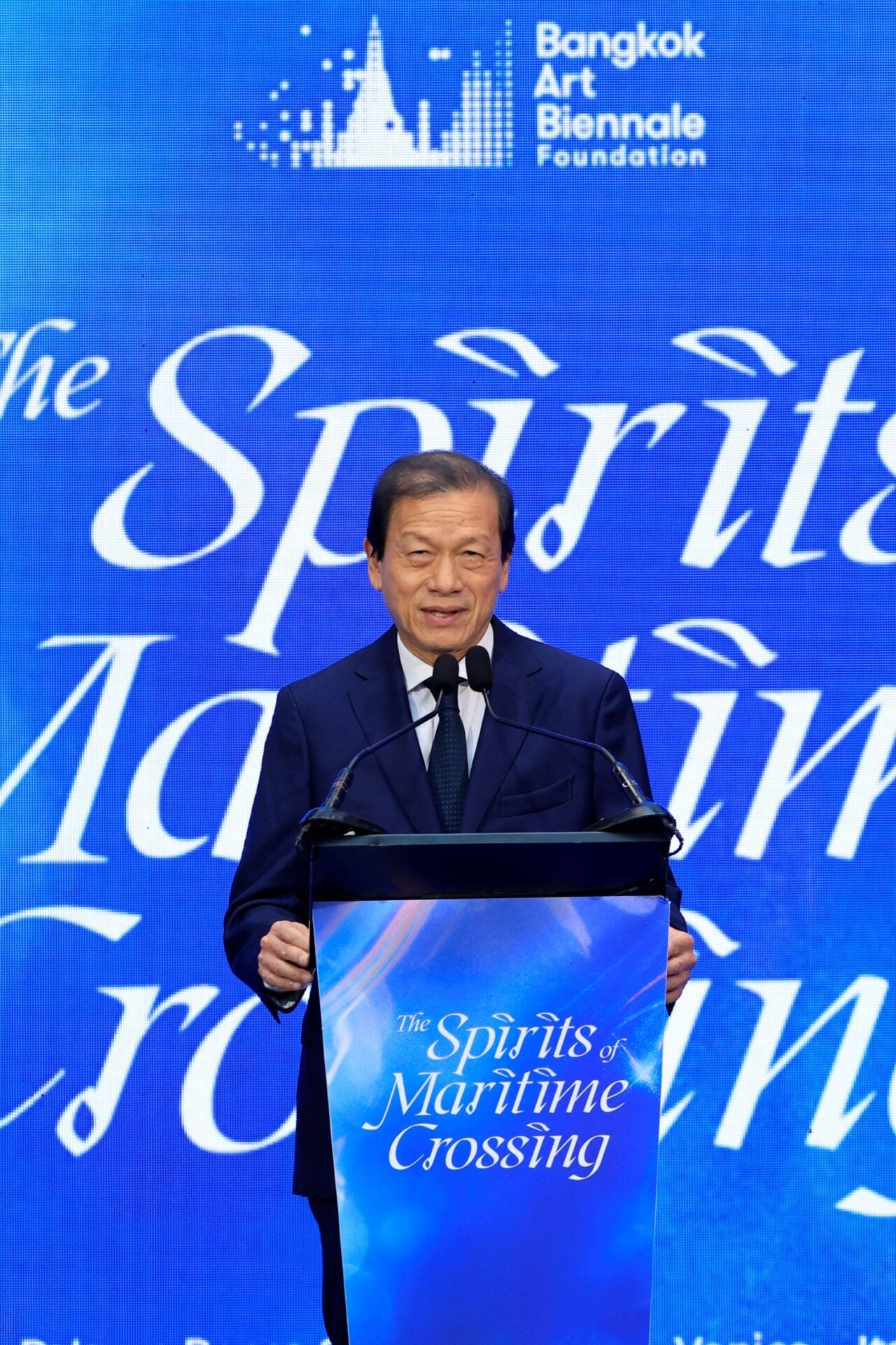 ศ.ดร.อภินันท์ โปษยานนท์ ประธานอำนวยการและผู้อำนวยการศิลป์ บางกอก อาร์ต เบียนนาเล่ และภัณฑารักษ์นิทรรศการครั้งนี้ กล่าวว่า The Spirits of Maritime Crossing : วิญญาณข้ามมหาสมุทร จัดขึ้นเมื่อ 2 ปี ที่แล้ว เพื่อส่งเสริมให้ศิลปินที่แสดงผลงานในบางกอก อาร์ต เบียนเนาเล่ ได้มีโอกาสเดินทางไปแสดงผลงานเวทีระดับนานาชาติ มูลนิธิ บางกอก อาร์ต เบียนนาเล่ จัดพาพื้นที่จัดแสดงในช่วงมหกรรมศิลปะที่โด่งดังที่สุดในโลก เวนิส เบียนนาเล่ ณ Palazzo Smith Mangilli Valmarana อาคารประวัติศาสตร์ ส่วนครั้งที่ 2 จำนวนศิลปินเพิ่มขึ้น 20 คน โดยจะจัดแสดงที่ Palazzo Rocca Contarini Corfù ธีมวิญญาณข้ามมหาสมุทรต้องการให้ศิลปินซึ่งมีพื้นฐานแตกต่างกันทั้งด้านเชื้อชาติ ศาสนา ภาษา และประสบการณ์ชีวิตตีความและแสดงออกหลากหลายมิติ ใช้สัญลักษณ์ของกระแสน้ำ การข้ามทะเล การไหลเททางวัฒนธรรม เป็นแกนกลางเล่าเรื่อง ตลอด 4 เดือนของนิทรรศการจะฉายแสงศักยภาพของศิลปินอาเซียนให้ชาวโลกได้รับรู้ ใช้ศิลปะทำหน้าที่ Soft Power รวมถึงสะท้อนจิตวิญญาณของภูมิภาคที่เต็มไปด้วยความหลากหลาย ทั้งเป็นหมุดหมายสำคัญนำศิลปะร่วมสมัยไทยและอาเซียนสู่เวทีโลก