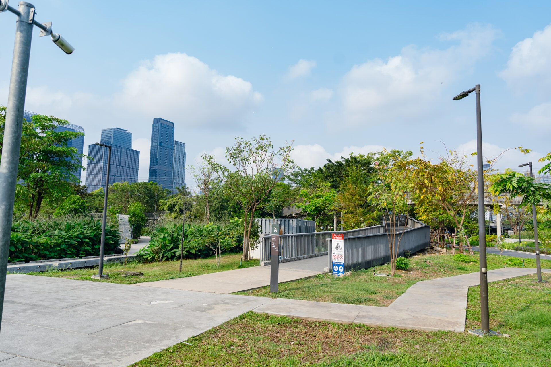 การเดินหน้าโครงการปรับปรุงภูมิทัศน์ทางคนเดินและทางจักรยานเชื่อมระหว่างสวนลุมพินีและสวนเบญจกิติ หรือ “สะพานเขียว” ระยะทางรวมกว่า 1.6 กิโลเมตร โดยกรุงเทพมหานคร (กทม.) ถือเป็นการชุบชีวิตโครงสร้างเดิมที่มีอายุกว่า 20 ปี ให้กลายเป็นโครงสร้างพื้นฐานสีเขียวที่ทันสมัยและปลอดภัย โครงการดังกล่าวดำเนินการภายใต้กลยุทธ์ “ฟื้นเมือง เชื่อมย่าน สานอนาคต” ครอบคลุม 5 มิติสำคัญ ได้แก่ มิติภูมิทัศน์และการเชื่อมต่อ (Green Connectivity & Urban Integration) สะพานเขียวไม่ได้เป็นเพียงทางเดินลอยฟ้า แต่ถูกพัฒนาให้เป็นโครงสร้างพื้นฐานสีเขียว ที่เชื่อมต่อปอดขนาดใหญ่ของเมือง ได้แก่ สวนลุมพินี และสวนเบญจกิติ เข้าด้วยกันอย่างสมบูรณ์ พร้อมปรับปรุงจุดเชื่อมต่อสำคัญ อาทิ ซอยสุขุมวิท 4 ซอยสุขุมวิท 10 ถนนรัชดาภิเษก ถนนวิทยุ และถนนสารสิน มีการเสริมความแข็งแรงโครงสร้าง ฐานราก คานคอนกรีต คานเหล็ก เสาเหล็ก และราวกันตกใหม่ทั้งหมด รวมถึงปรับปรุงทางลาด ( Ramp) เชื่อมต่อหลายจุด เพื่อให้โครงข่ายทางเท้าและทางจักรยานในย่านธุรกิจ (CBD) มีความต่อเนื่อง ลดการพึ่งพารถยนต์ และสนับสนุนการเดินทางที่เป็นมิตรต่อสิ่งแวดล้อม พร้อมทั้งจัดสวน ปลูกไม้ยืนต้นและไม้พุ่มตลอดแนวสะพาน สร้างบรรยากาศ “Urban Forest” หรือป่าในเมือง เพิ่มความร่มรื่น ลดอุณหภูมิ และช่วยดูดซับฝุ่นละออง