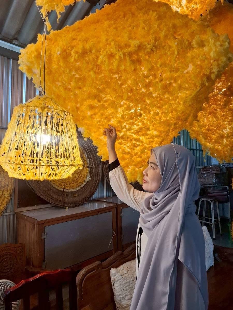 วิสาหกิจชุมชนรังไหมประดิษฐ์ได้ต่อยอดองค์ความรู้ด้านการเลี้ยงไหมและการประดิษฐ์รังไหมให้เกิดมิติใหม่ทางศิลปะร่วมสมัยผ่านการออกแบบผลิตภัณฑ์ เช่น หมวก กระเป๋า โคมไฟ เสื้อผ้า และเครื่องประดับจากรังไหม สะท้อนอัตลักษณ์ของท้องถิ่นและคุณค่าทางศิลปะ ที่สำคัญใช้วัสดุธรรมชาติและการย้อมสีจากพืชในพื้นที่เข้ากับเทรนด์โลก ยิ่งกว่านั้นภายในชุมชมส่งเสริมให้กลุ่มเปราะบาง ทั้งผู้สูงอายุ คนที่มีน้ำหนักเกินมาตรฐาน และผู้มีรายได้น้อยเข้ามามีส่วนร่วมสร้างผลงานศิลปะจากรังไหม เช่น เย็บโคมไฟ กระเป๋า และเครื่องประดับด้วยมือ ช่วยให้มีรายได้เสริม