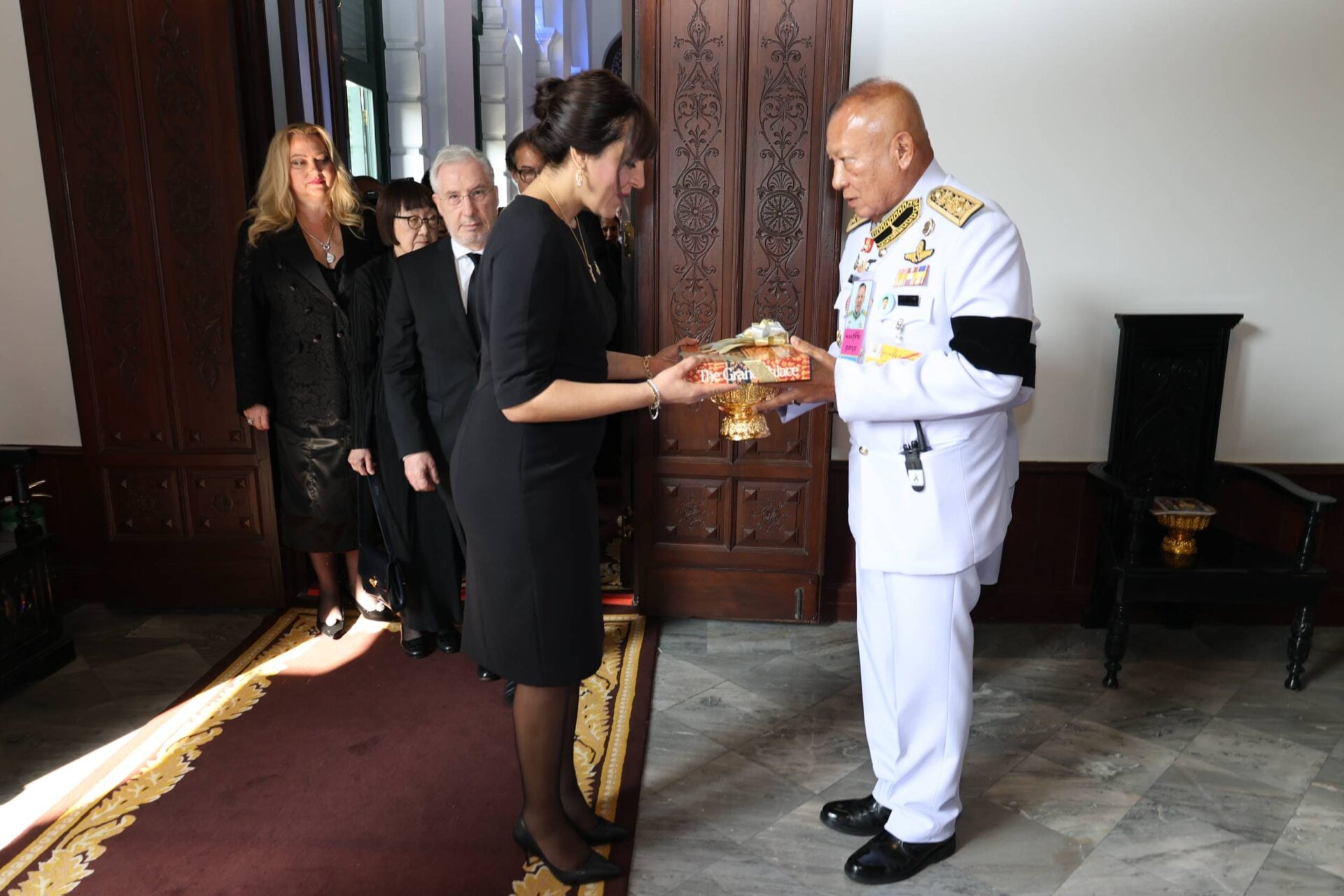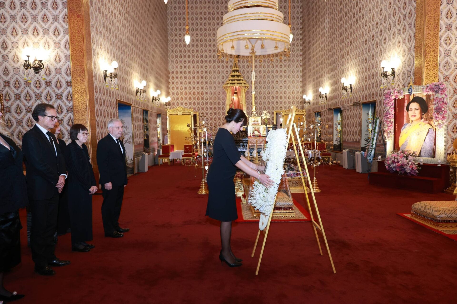 วันที่ 5 มีนาคม 2569 เวลา 09.00 น. เจ้าหญิงยัสมี มูว์รา (Princess Yasmine Murat) ประธานสมาคมส่งเสริมเกียรติภูมิฝรั่งเศส ถวายราชสักการะพระโกศ สมเด็จพระนางเจ้าสิริกิติ์ พระบรมราชินีนาถ พระบรมราชชนนีพันปีหลวง ณ พระที่นั่งดุสิตมหาปราสาท และลงนามในสมุดหลวงถวายความอาลัย ณ ห้องแดง อาคารหน่วยราชการในพระองค์ 904 ทิศตะวันออก ในพระบรมมหาราชวัง