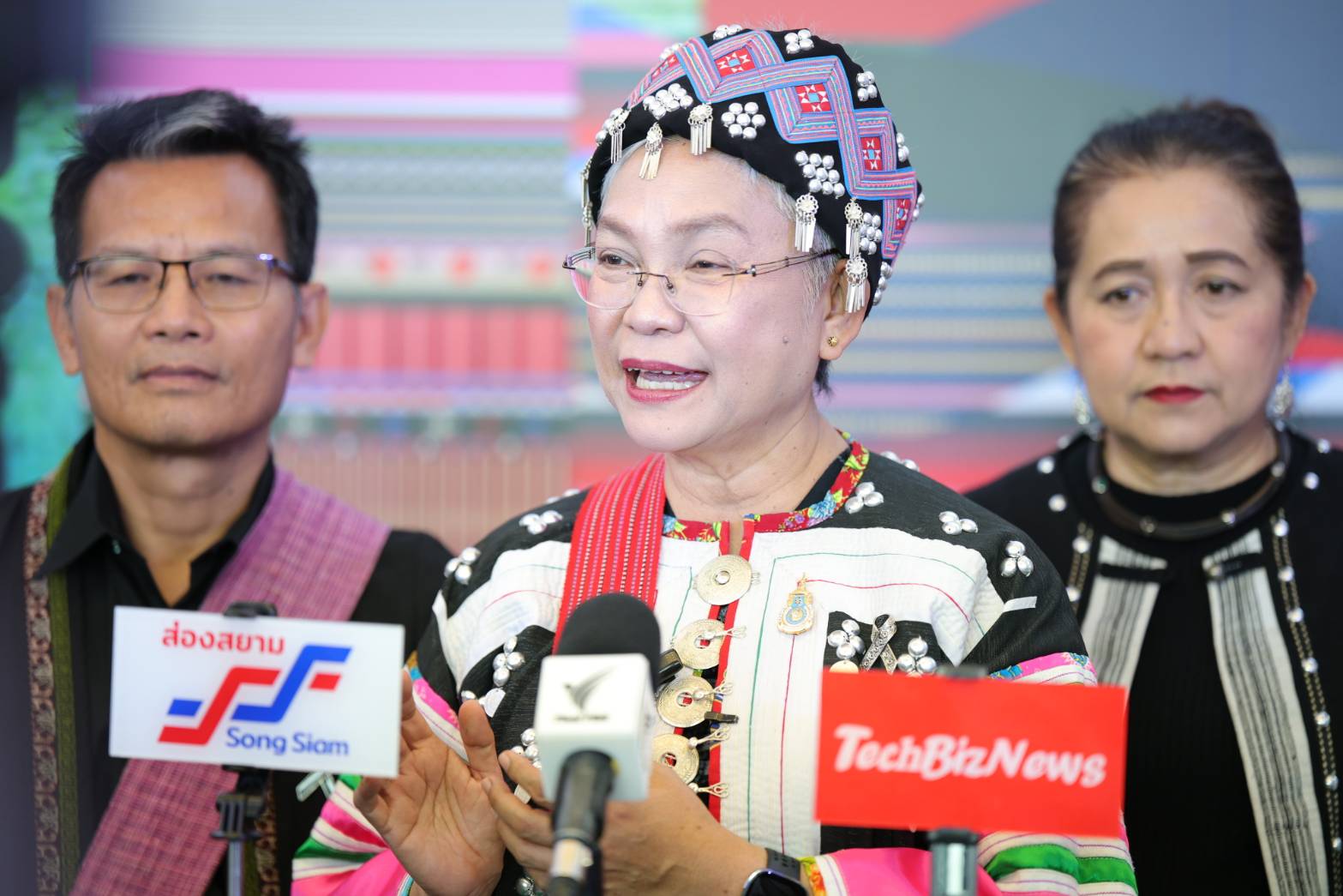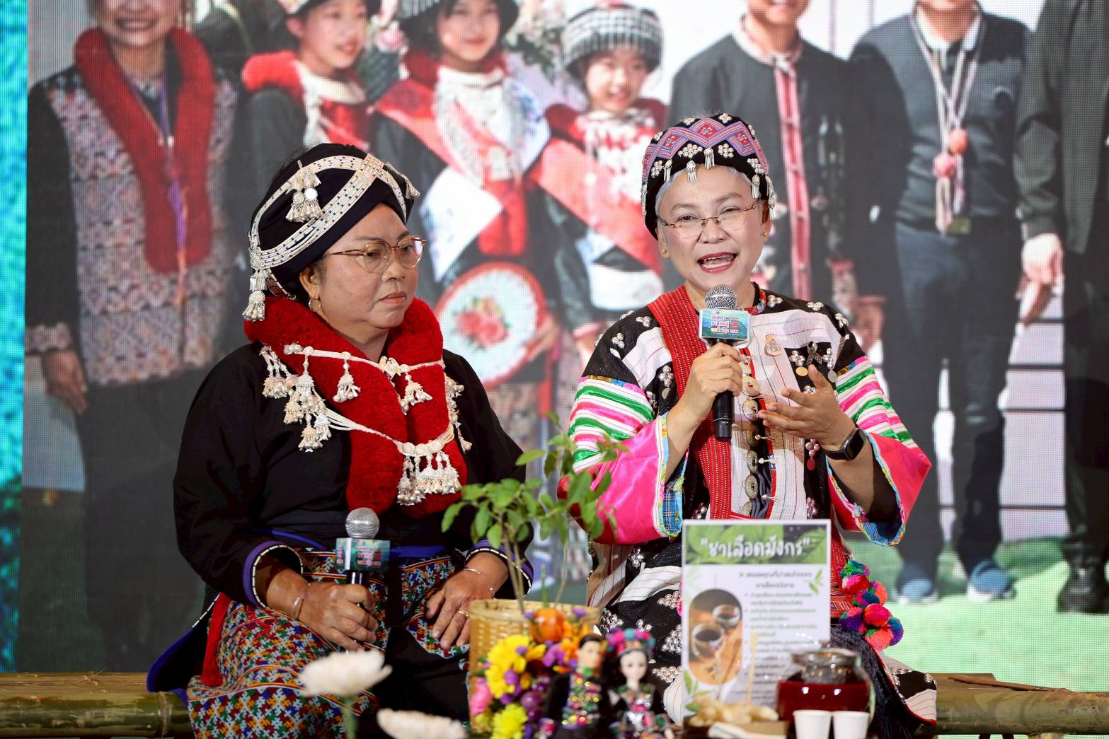 อธิบดีกรมพัฒนาสังคมและสวัสดิกา กล่าวว่า จากงานในหน้าที่ของกรมที่ดูแลสวัสดิการของประชาชนทุกกลุ่ม สำหรับกลุ่มชาติพันธุ์ ในพื้นที่สูง 10 กลุ่มปัจจุบันมีจำนวน 759,000 คน กระจายอยู่ในพื้นที่ 20 จังหวัด ของภาคเหนือและภาคตะวันตกของประเทศ นอกจากนั้น ยังมีกลุ่มชาวเล 15,000 คน และกลุ่มที่อยู่ในป่าอีก 500คน แนวทางของกรมฯ ยึดตามแนวพระราชดำริพระบาทสมเด็จพระเจ้าอยู่หัว รัชกาลที่ 9 ที่ทรงดูแลพี่น้องทุกคนไม่ว่าจะอยู่ที่ไหน ทำให้งานปีนี้ จะพิเศษแตกต่างจากปีที่ผ่านๆมา โดยมีการน้อมนำพระราชกรณียกิจของรัชกาลที่ 9 สมเด็จพระนางเจ้าสิริกิติ์ พระบรมราชินีนาถพระพันปีหลวง และในหลวงรัชกาลที่ 10 ในการพัฒนาคุณภาพชีวิตราษฎรบนพื้นที่สูงอย่างยั่งยืนมาเทิดพระเกียรติ โดยแยกพระกรณียกิจของทั้ง 3พระองค์ โดยในหลวง ร. 9 ทรงทำให้กลุ่มชาติพันธุ์มีคุณภาพชีวิตดีขึ้น ทรงมีสายพระเนตรยาวไกล สนับสนุนการทำกินราษฎรพื้นที่สูงจนเกิดเป็นโครงการหลวง ขณะเดียวกันก็ทรงสนับสนุนให้ชาวชาติพันธุ์ ใช้ชีวิตอยู่ร่วมกับธรรมชาติ อยู่ร่วมกับป่า ซึ่งเป็นวิถีชีวิตดั้งเดิม พร้อมกับทรงโน้มน้าวให้พวกเขาเปลี่ยนอาชีพจาการปลูกฝิ่น ทำไร่เลื่อนลอยมาเป็นการปลูกพืชผักเมืองหนาว ส่งให้โครงการหลวง ส่วนพระพระพันปีหลวง ทรงยกระดับงานฝีมือผลิตภัณฑ์ต่างๆ ทั้งการเย็บปักถักร้อย การตีเหล็ก การทำเครื่องเงิน ทรงรับซื้อชิ้นงานเหล่านี้ และนำมาต่อยอดพัฒนา ขึ้นมาเป็นงานศิลปาชีพในเวลาต่อมา