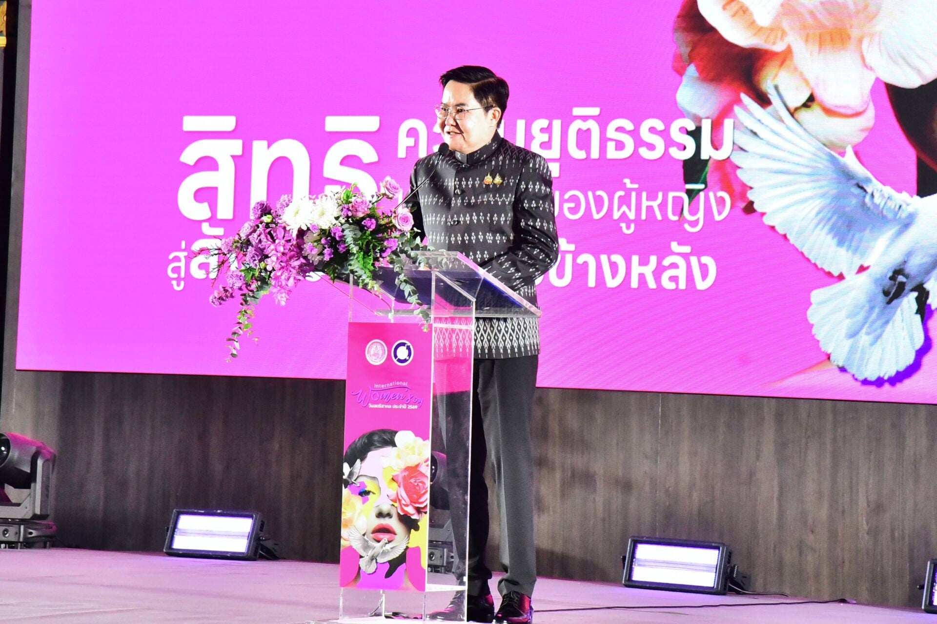 รมว.พม. กล่าวว่า วันนี้ กระทรวง พม. โดยกรมกิจการสตรีและสถาบันครอบครัว (สค.) ได้จัดงานวันสตรีสากล ประจำปี 2569 ภายใต้แนวคิด “สิทธิ ความยุติธรรมและเสียงของผู้หญิง : สู่สังคมที่ไม่ทิ้งใครไว้ข้างหลัง” เพื่อมุ่งเน้นให้ความสำคัญต่อการสร้างความเสมอภาค ความยุติธรรม และการรับฟังเสียงของผู้หญิง สอดคล้องกับหัวข้อหลักในการประชุมคณะกรรมาธิการว่าด้วยสถานภาพสตรี สมัยที่ 70 (CSW70) ที่จัดขึ้นระหว่างวันที่ 9 -19 มีนาคม 2569 ณ สำนักงานใหญ่สหประชาชาติ นครนิวยอร์ก สหรัฐอเมริกา คือ การสร้างหลักประกันและเสริมสร้างการเข้าถึงความยุติธรรมสำหรับผู้หญิงและเด็กหญิงทุกคน รวมถึงการส่งเสริมระบบกฎหมายที่ครอบคลุมและเท่าเทียมกัน การขจัดกฎหมาย นโยบายและแนวปฏิบัติที่เลือกปฏิบัติ และการแก้ไขอุปสรรคเชิงโครงสร้าง รวมถึงสอดคล้องกับเป้าหมายการพัฒนาที่ยั่งยืนเป้าหมายที่ 5 เพื่อบรรลุความเท่าเทียมทางเพศ พัฒนาบทบาทสตรีและเด็กผู้หญิง ซึ่งเป็นการตอกย้ำถึงความมุ่งมั่นของรัฐบาล ในการขับเคลื่อนยุทธศาสตร์ชาติเพื่อสร้างความเสมอภาคทางสังคม ผ่านการยกระดับการคุ้มครองสิทธิขั้นพื้นฐานให้สตรีทุกกลุ่มสามารถเข้าถึงสวัสดิการแห่งรัฐอย่างเท่าเทียม ควบคู่ไปกับการสร้างความยุติธรรม ด้วยการผลักดันการบังคับใช้กฎหมายอย่างเป็นธรรมและขจัดการเลือกปฏิบัติในทุกรูปแบบ พร้อมทั้งเปิดพื้นที่รับฟังเสียงของสตรีเพื่อให้สตรีมีบทบาทสำคัญในการตัดสินใจและเป็นพลังขับเคลื่อนเศรษฐกิจและสังคม ทั้งนี้การบูรณาการทั้งหมดนั้น ตั้งอยู่บนเป้าหมายคือการก้าวไปสู่สังคมที่ไม่ทิ้งใครไว้ข้างหลัง ด้วยการมุ่งเน้นดูแลยกระดับคุณภาพชีวิตสตรีกลุ่มเปราะบางให้สามารถพึ่งพาตนเองได้อย่างมีศักดิ์ศรีความเป็นมนุษย์ เพื่อสร้างสรรค์สังคมไทยที่ทุกคนมีความเข้มแข็งและก้าวหน้าไปพร้อมกันอย่างยั่งยืน