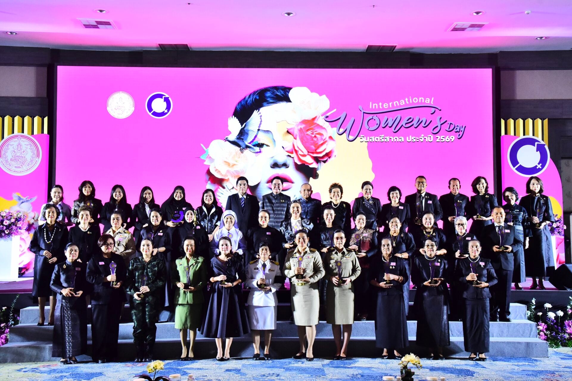 นายอัครา กล่าวเพิ่มเติมว่า การจัดงานในวันนี้ มีพิธีมอบโล่เกียรติคุณแก่สตรี บุคคล และหน่วยงานองค์กรดีเด่น เนื่องในวันสตรีสากล ประจำปี 2569 โดยแบ่งเป็นการมอบโล่รางวัลเกียรติยศ จำนวน 1 รางวัล ได้แก่ นางสาวปาตีเมาะ เปาะอิแตดาโอะ นายกสมาคมผู้หญิงเพื่อสันติภาพ (We Peace) ซึ่งได้รับรางวัลสตรีสากลมาแล้ว 3 ครั้ง และการมอบโล่ประกาศเกียรติคุณแก่สตรี บุคคล และหน่วยงานองค์กรดีเด่น จำนวน 16 สาขา 85 รางวัล อาทิ 1) นางเอกสิริ ปิณฑะรุจิ ปลัดกระทรวงการต่างประเทศ รับรางวัลสตรีดีเด่นในเวที เครือข่ายระดับสากล ประเภทบุคคลภาครัฐ 2) กรมอนามัย รับรางวัลบุคคลดีเด่นและหน่วยงานองค์กรดีเด่น ด้านการคุ้มครองสิทธิและการส่งเสริมความเสมอภาคระหว่างเพศ ประเภทหน่วยงานภาครัฐ 3) นางภัทราวดี มีชูธน ศิลปินแห่งชาติ รับรางวัลสตรีดีเด่นด้านศาสนาศิลปะและวัฒนธรรม และศิลปวัฒนธรรมร่วมสมัย และ 4) นางสาวคาโอริ ทานิซาว่า ประธานกรรมการบริหารประจำประเทศไทย บริษัทพรอคเตอร์ แอนด์ แกมเบิล เทรดดิ้ง (ประเทศไทย) จำกัด รับรางวัลสตรีดีเด่นในเวที เครือข่ายระดับสากล ประเภทบุคคลภาคเอกชน