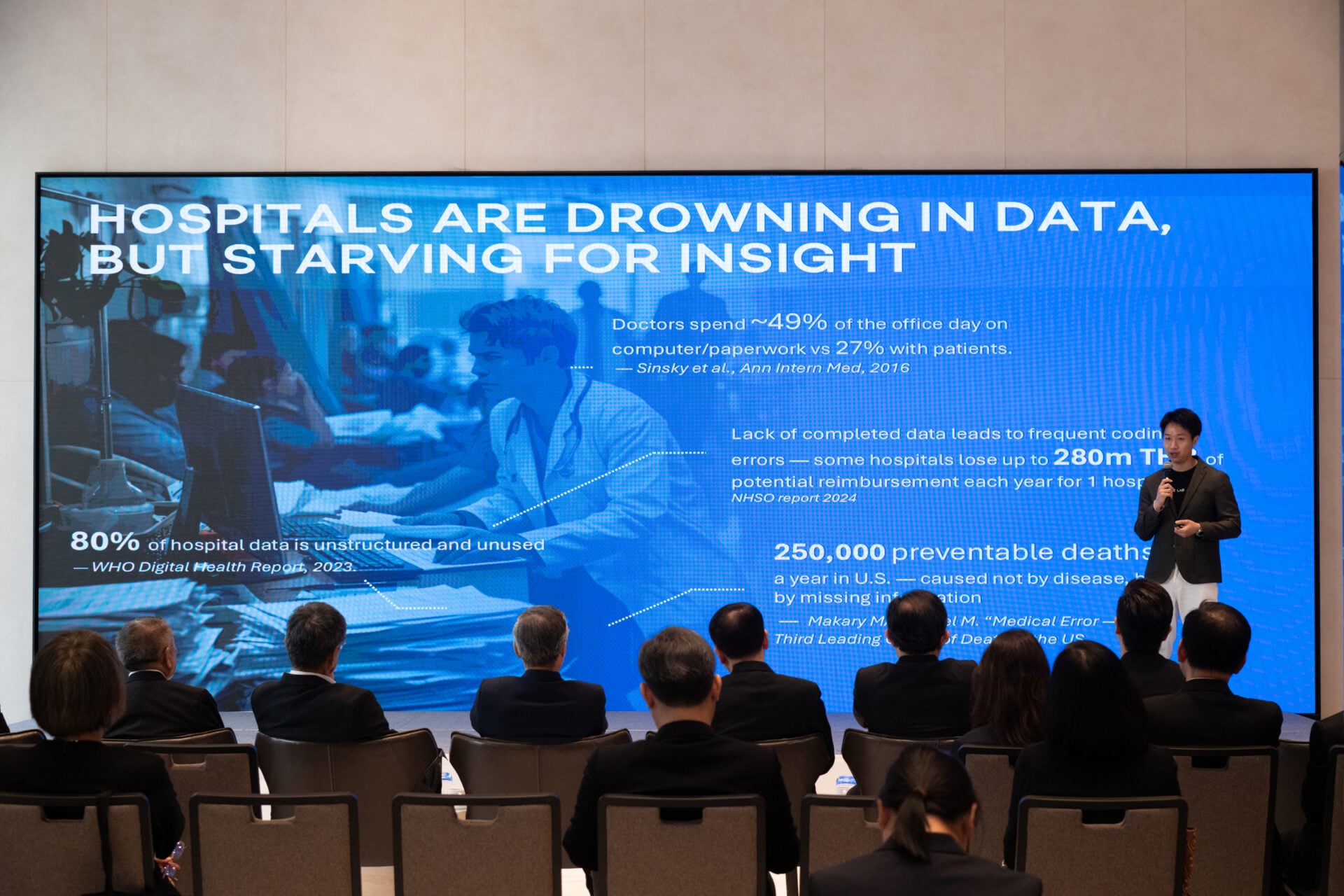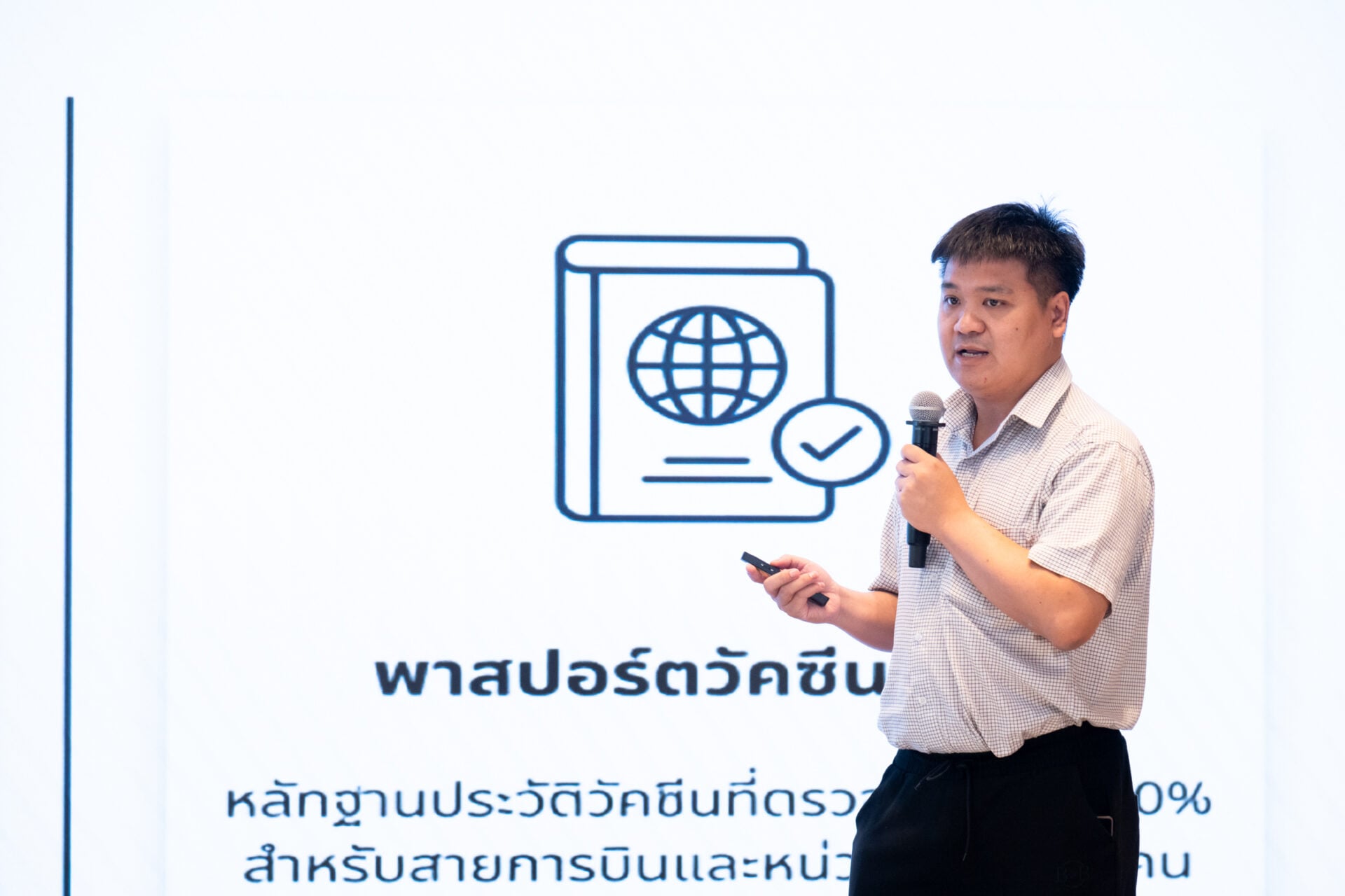 อีกนวัตกรรมเด่นแก้วิกฤตข้อมูลสุขภาพ ลดความซ้ำซ้อน Digital Health Platform นพ.เดโชวัต พรมดา บริษัท เฮลท์แท็ก จำกัด กล่าวว่า เราพัฒนาพาสปอร์ตสุขภาพดิจิทัลในมือทุกคน โดยเปลี่ยนผู้ป่วยให้เป็นศูนย์กลางสร้าง Health Wallet บนเทคโนโลยี Blockchain มีระบบควบคุมการเข้าถึงข้อมูลอย่างละเอียด เลือกเปิดหรือปิดข้อมูลเฉพาะส่วนให้ใครเห็นก็ได้ผ่านแอป ไม่ใช่แค่ดูผลเลือก แต่รหัสเดียวเชื่อมทุกมิติ เชื่อมโยงทุกโรงพยาบาลด้วยไอดีเดียว สามารถใช้ยืนยันสุขภาพเพื่อสมัครงานได้ทันทีแบบไร้กระดาษ เคลมประกันอัตโนมัติ ลดขั้นตอน ที่สำคัญเป็นพาสปอร์ตวัคซีนสากล หลักฐานประวัติวัคซีนตรวจสอบได้ 100% สำหรับสายการบินและหน่วยงานตรวจคนเข้าเมือง ความปลอดภัยระดับธนาคาร การทำงานร่วมกับ Siam AI ทำให้ประมวลผลแม่นยำ ข้อมูลผู้ป่วยไม่หลุด สรุปจากประวัติจริงเท่านั้น อ้างอิงแหล่งที่มาได้ เปลี่ยนการรอคอยจากเดิมต้องเดินทางหรือรอเอกสาร 3-7 วัน เหลือแค่นาทีเดียว ไม่มีต้นทุน และมีความน่าเชื่อถือยืนยันจากรพ.ต้นทาง บริษัทมีแผนการพัฒนาไปสู่โครงสร้างพื้นฐานข้อมูลสุขภาพแห่งชาติAI