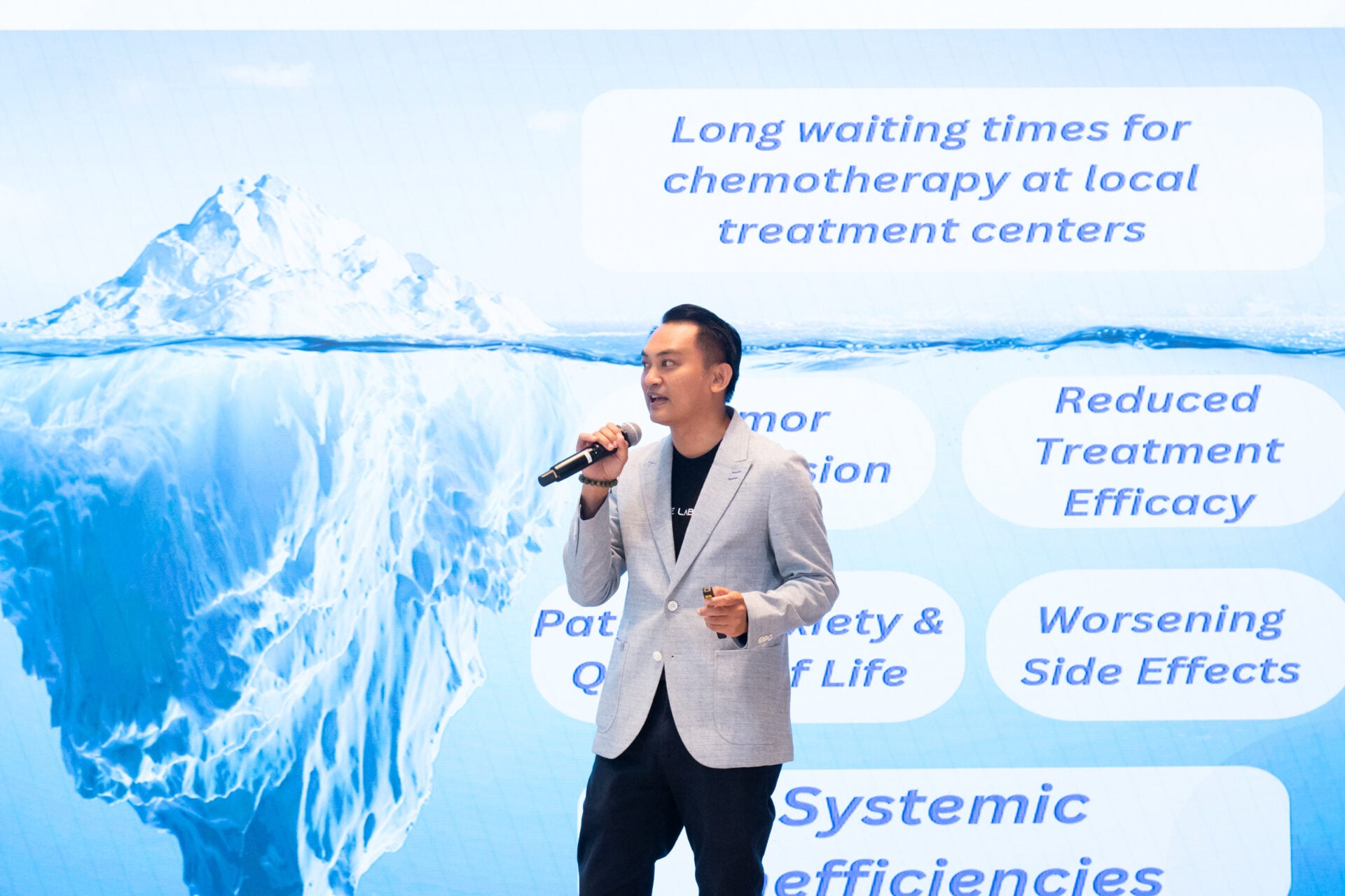 “ เราพัฒนาแพลตฟอร์มผสมยาแบบปิดที่เชื่อมโยงเอไอเข้ากับเครื่องจักรเพื่อความปลอดภัยและประสิทธิภาพสูงสุด ป้องกันการสัมผัสกับยาโดยตรง ลดต้นทุนระบบการจ่ายยา ไม่พึ่งเทคโนโลยีต่างประเทศ ตรวจสอบย้อนกลับได้ ซึ่งนวัตกรรมได้รับการยอมรับจากอนุสิทธิบัตรแล้ว โดยติดตั้งระบบเอไออัจฉริยะนี้ที่สถาบันมะเร็งแห่งชาติ ทดสอบความแม่นยำ ความถูกต้องของการผสมยาและคุณภาพ พิสูจน์แล้วว่าแพทย์ เภสัชกรสามารถทำงานร่วมกับเครื่องจักรได้อย่างอัตโนมัติและสั่งยาได้อย่างเรียบร้อย โดยจะเก็บผลระยะยาว 30 เคส ภายใน 2 เดือนนี้ หากสำเร็จ จะเปลี่ยนจากนำเข้าสู่สร้างเทคโนโลยีภายในประเทศ สามารถชดเชยการนำเข้าได้มากกว่า 300 ล้านบาทต่อปี นอกจากโรงพยาบาลขนาดใหญ่แล้วจะพัฒนาแพลตฟอร์มนี้ให้เหมาะกับโรงพยาบาลขนาดกลางและขนาดเล็กอีกด้วย โมเดลทางธุรกิจไม่ใช่แค่พัฒนาเอไอและทำเครื่องจักร แต่เราจะส่งมอบคุณค่า คืนเวลาให้ผู้ป่วยโรคมะเร็ง 2.5 เท่า “ ดร.เอกชัย กล่าว
