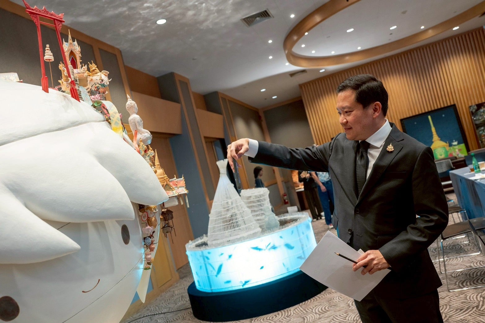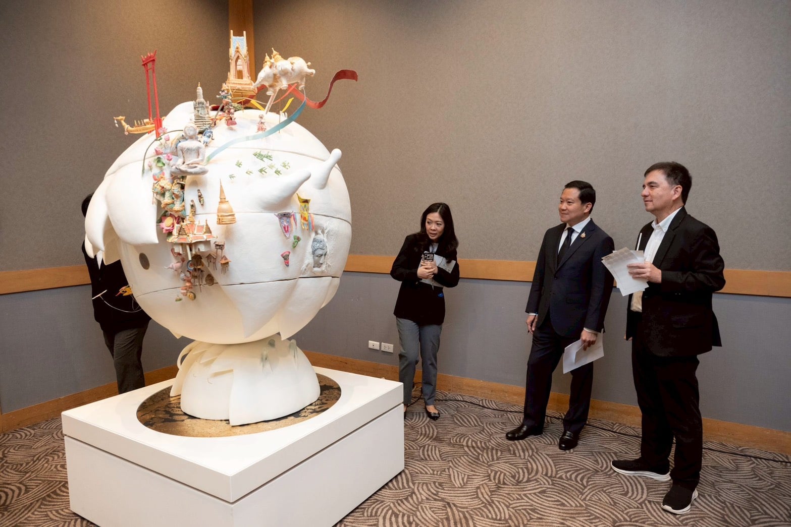 สนใจชมข้าพเจ้านำเรื่องราวความประทับใจในกิจกรรมการลงแขกเกี่ยวข้าวของสังคมชนบทอีสานของตนเอง มาเป็นแรงบันดาลใจ ซึ่งเป็นเอกลักษณ์วิถี สร้างสรรค์ผลงานศิลปะร่วมสมัยผ่านเทคนิคกระบวนการเย็บปักเส้นด้าย ร้องเรียงเรื่องราวความรัก ความสัมพันธ์ ผสานพลังความสามัคคี ก่อเกิดความสุขของการร่วมแรงร่วมใจช่วยเหลือซึ่งกันและกัน ภายใต้การใช้ชีวิตที่เรียบง่าย สามารถปรับประยุกต์วิถีชีวิตให้เข้ากับสภาพสังคมที่เปลี่ยนแปลงไปได้อย่างกลมกลืน โดยยึดตามหลักปรัชญาเศรษฐกิจพอเพียงของในหลวง รัชกาลที่ 9 ที่ตรัสถึง “ความพอเพียงสร้างได้ก็ต่อเมื่อคนในชุมชนช่วยเหลือเกื้อกูลกัน” เป็นประโยคที่จุดประกายความคิดให้ข้าพเจ้าเล็งเห็นถึงการมีส่วนร่วมจากส่วนรวม เพื่อสร้างสรรค์และสานสัมพันธ์ชุมชนไทยให้ยั่งยืนสืบไปนิทรรศการศิลปกรรมช้างเผือก จัดแสดง ณ ชั้น 9 หอศิลปวัฒนธรรมแห่งกรุงเทพมหานคร ตั้งแต่วันที่ 24 มี.ค. – 17 พ.ค. 2569 นอกจากนี้ ผลงานบางส่วนนำไปจัดแสดงให้ชมอีกครั้งในงาน SX2026 ระหว่างวันที่ 6-15 พ.ย. 2569