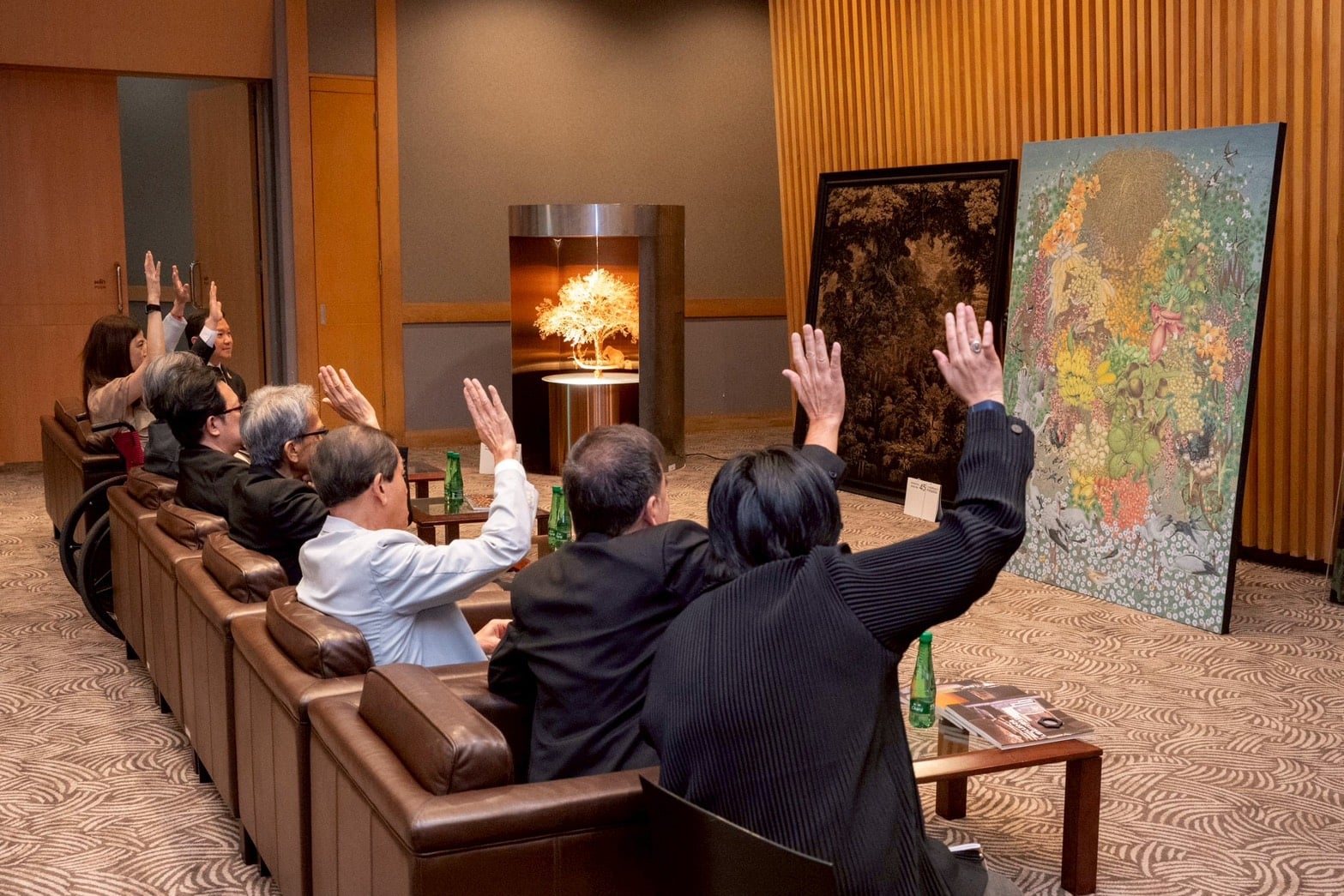 สำหรับคณะกรรมการ 9 คน ประกอบด้วยนายฐาปน สิริวัฒนภักดี ศ.ดร.อภินันท์ โปษยานนท์ ศ.เกียรติคุณพิษณุ ศุภนิมิตร ศ.เกียรติคุณถาวร โกอุดมวิทย์ ศ.ญาณวิทย์ กุญแจทอง ศ.ทินกร กาษรสุวรรณ นายนิติกร กรัยวิเชียร นางวรรณพร พรประภา และนางสาว มนุรดา พรชนะรักษ์ ร่วมพิจารณาคัดเลือกผลงานรางวัลช้างเผือก รวมถึงรางวัลอื่นรวม 21 รางวัล ทั้งนี้ ผลงานที่ได้รับรางวัลและผลงานที่ผ่านการคัดเลือกอีก 29 ผลงาน จะนำมาจัดแสดงในนิทรรศการ เพื่อโชว์ศักยภาพของศิลปินไทย