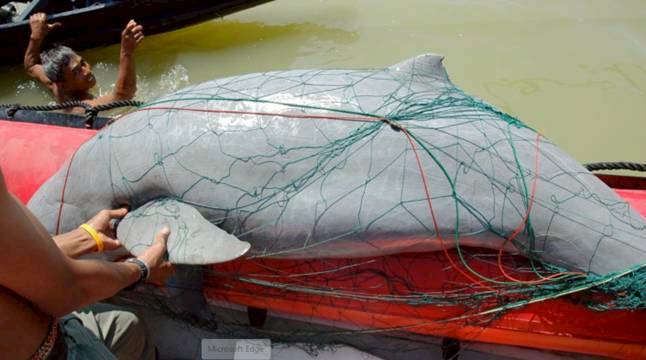 “ตั้งแต่พ.ศ.2545 มีการใช้อวนปลาบึกที่มีขนาดใหญ่ในทะเลสาบสงขลา ตั้งแต่ปีนั้นเราพบว่าโลมาอิรวดีเข้าไปติดอวนและตายเยอะมาก ซึ่งจริงๆ แล้ว ชาวบ้านที่เป็นชาวประมงไม่ได้ต้องการจับโลมา แต่หวังจับปลาบึกเอาไปขาย พอโลมาเข้ามาติดอวนเขาก็ปล่อยไป แต่โลมาเป็นสัตว์ขี้ตกใจ ถึงปล่อยไปแล้ว มันก็จะช็อกและตาย มาเกยหาดทำให้เรารู้ว่ามันมีการเสียชีวิตเกิดขึ้น “สันติกล่าว