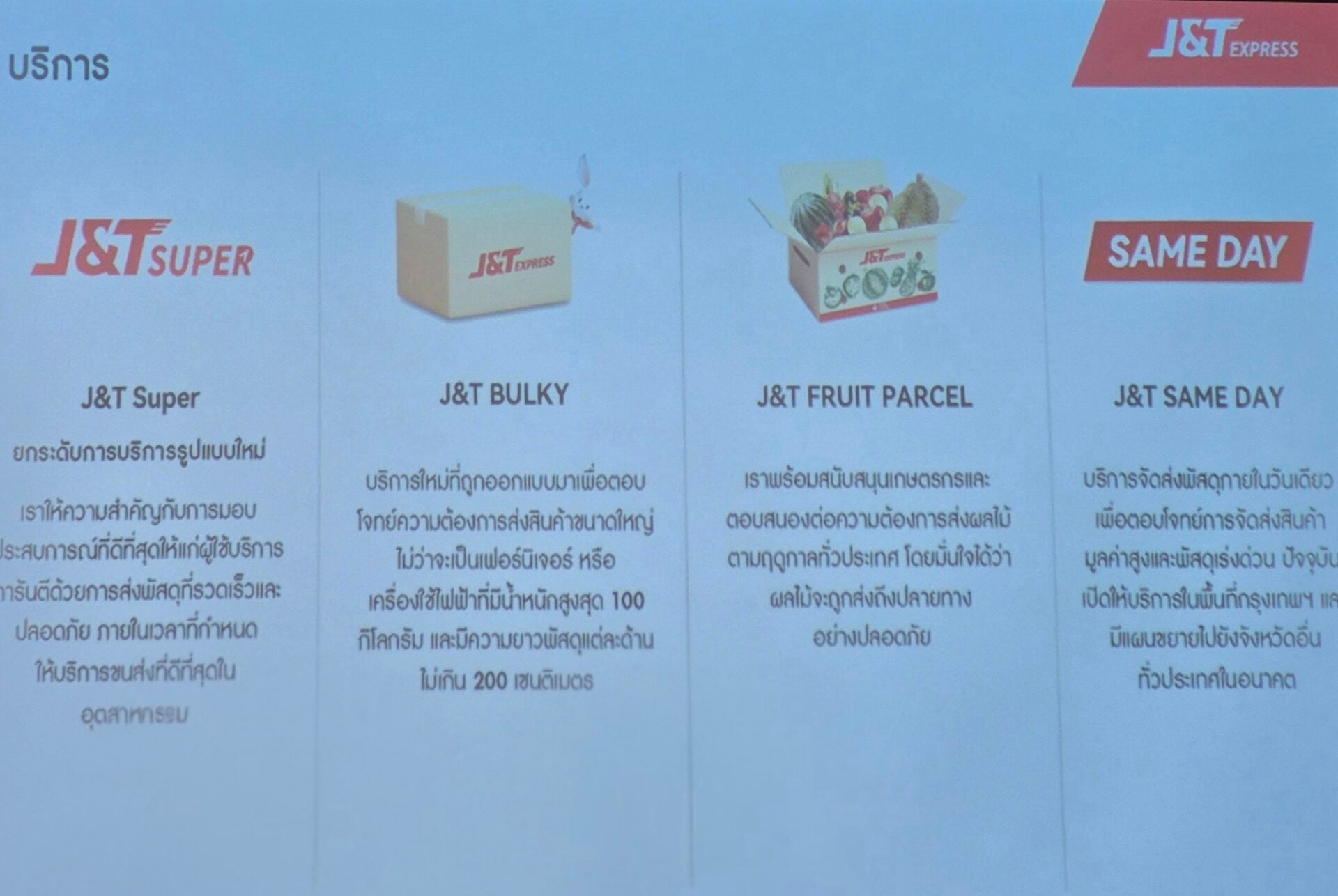 ภายใต้บริบทดังกล่าว ทำให้เจแอนด์ที เอ็กซ์เพรส ประเทศไทยผู้ให้บริการโลจิสติกส์ในประเทศไทย ซึ่งก้าวสู่ปีที่ 7 ของการดำเนินธุรกิจ ยังคงมุ่งเน้นลูกค้าโดยมีประสิทธิภาพเป็นรากฐาน พร้อมกับพัฒนาการบริการผ่านโครงสร้างพื้นฐานอัจฉริยะและเครือข่ายโลจิสติกส์ดิจิทัลมาใช้ เพื่อยกระดับบริการแบบครบวงจร เชื่อมต่อการขนส่งในระดับโลกได้อย่างมีประสิทธิภาพ และสอดรับกับพฤติกรรมผู้บริโภคในยุคดิจิทัล