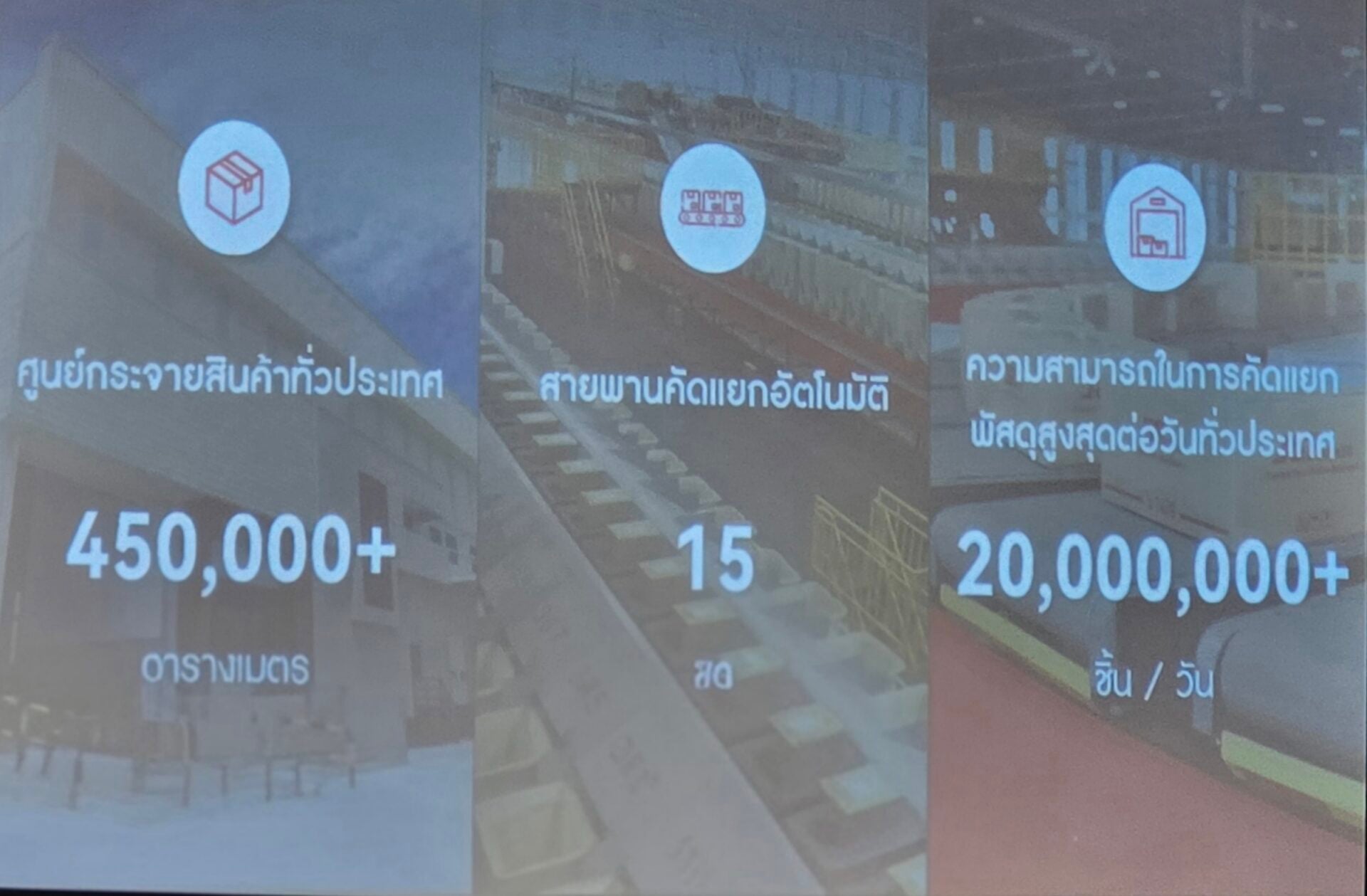 สำหรับระบบคัดแยกพัสดุอัตโนมัติ เป็นระบบสายพานผสานเทคโนโลยี AI และกล้องตรวจจับอัตโนมัติในการระบุรหัสปลายทาง พร้อมคัดแยกพัสดุลงในช่องที่รองรับได้สูงสุดถึง 60 ช่อง ช่วยให้การจัดเรียงเป็นระบบมากขึ้น ลดข้อผิดพลาด และประหยัดเวลาในการดำเนินงาน ขณะเดียวกัน ระบบยังสามารถบันทึกข้อมูลแบบเรียลไทม์ เพื่อให้ผู้บริหารติดตาม วิเคราะห์ และวางแผนการใช้ทรัพยากรได้อย่างมีประสิทธิภาพ
