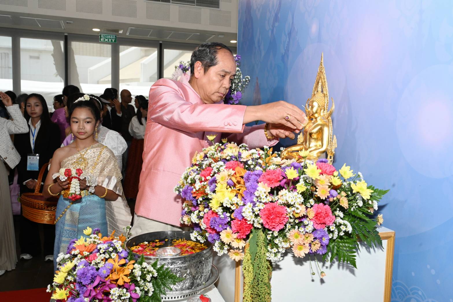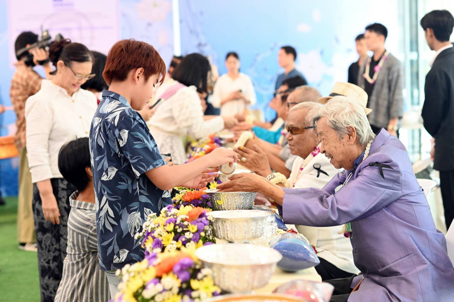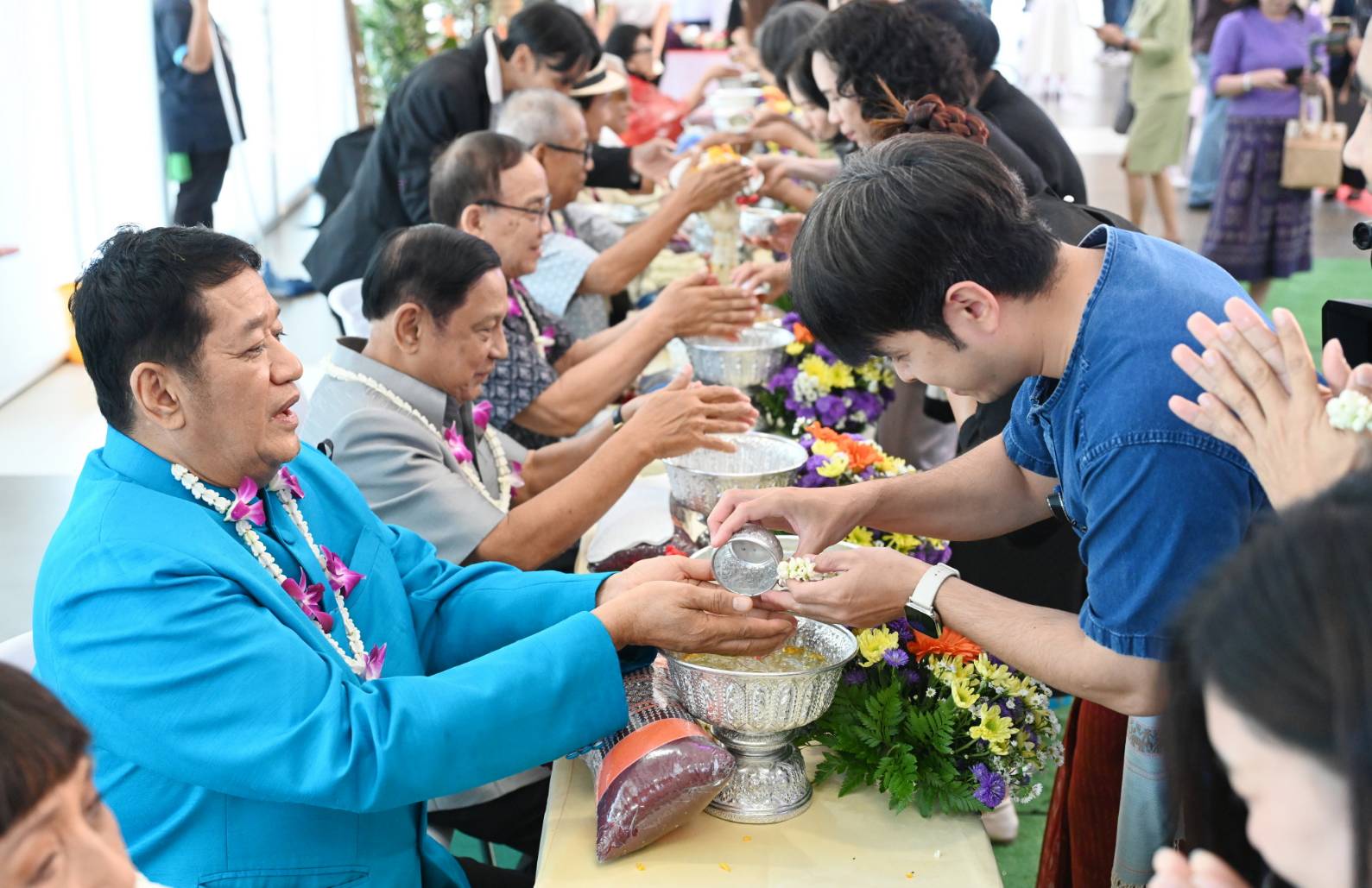 โอกาสนี้ นางสาวซาบีดา ไทยเศรษฐ์ รัฐมนตรีว่าการกระทรวงวัฒนธรรม เป็นประธานในพิธีรดน้ำขอพรและมอบพวงมาลัยให้แก่เหล่าศิลปินแห่งชาติ โดยมีนายประสพ เรียงเงิน ปลัดกระทรวงวัฒนธรรม นางยุถิกา อิศรางกูร ณ อยุธยา อธิบดีกรมส่งเสริมวัฒนธรรม เข้าร่วมงาน ณ อาคารอเนกประสงค์ ศูนย์วัฒนธรรมแห่งประเทศไทย กรุงเทพฯ นับเป็นช่วงเวลาแสดงความกตัญญูกตเวทีต่อศิลปินแห่งชาติ ในฐานะผู้ที่ได้อุทิศตนสร้างสรรค์ผลงานทรงคุณค่าอันเป็นมรดกทางวัฒนธรรม อาทิ ชาย เมืองสิงห์ หรือ นายสมเศียร พานทอง สาขาศิลปะการแสดง (นักร้อง – นักแต่งเพลงลูกทุ่ง) รศ.ภิญโญ สุวรรณคีรี สาขาทัศนศิลป์ (สถาปัตยกรรม) นางลาวัณย์ อุปอินทร์ สาขาทัศนศิลป์ นางนันทวัน เมฆใหญ่ สุวรรณปิยะศิริ สาขาศิลปะการแสดง (ภาพยนตร์และละครโทรทัศน์) โย่ง เชิญยิ้ม หรือนายพิเชษฐ์ เอี่ยมชาวนา สาขาศิลปะการแสดง (การแสดงพื้นบ้าน – เพลงฉ่อย) นายวินัย พันธุรักษ์ นายรอง เค้ามูลคดี นางรัจนา พวงประยงค์ นายสลา คุณวุฒิ ฯลฯ ภายในงานมีการสาธิตการร้อยกรองมาลัยดอกไม้สด และสาธิตการทำเครื่องหอมไทย ซึ่งเป็นมรดกภูมิปัญญาทางวัฒนธรรมที่ผูกพันกับประเพณีสงกรานต์ไทย