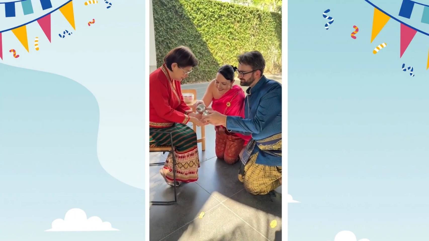 สำหรับปีนี้แต่ละประเทศมีการสร้างสรรค์วีดิทัศน์อวยพรและส่งความปรารถนาดีมายังประชาชนชาวไทย โดยแต่ละประเทศได้นำเสนอผ่านมุมมองที่เปี่ยมด้วยความคิดสร้างสรรค์ ผสมผสานเอกลักษณ์ของแต่ละชาติเข้ากับความสดใสของสงกรานต์ไทยได้อย่างลงตัว โดยสามารถรับชมได้ทาง Youtube ของสำนักงานปลัดกระทรวงวัฒนธรรม https://youtu.be/LmuTeLjfs8I?si=9HjWfaLpyEqQxSFV รับชมความประทับใจเหล่านี้ผ่านสื่อโซเชียลมีเดีย แสดงถึงความเชื่อมสัมพันธไมตรีระหว่างประเทศและสร้างการรับรู้ถึงคุณค่าสาระที่แท้จริงของสงกรานต์ในประเทศไทยให้ชาวต่างชาติได้รับทราบอย่างลึกซึ้งยิ่งขึ้น โดยมีหลายประเทศร่วมแต่งชุดไทย อาทิ ออสเตรเลีย ราชอาณาจักรเบลเยียม สาธารณรัฐกัวเตมาลา ญี่ปุ่น นิวซีแลนด์ สาธารณรัฐฝรั่งเศส และอีกหลายประเทศ สวมเสื้อผ้าไทย และเสื้อลายดอก ลายช้าง ร่วมกิจกรรมดังกล่าวด้วย