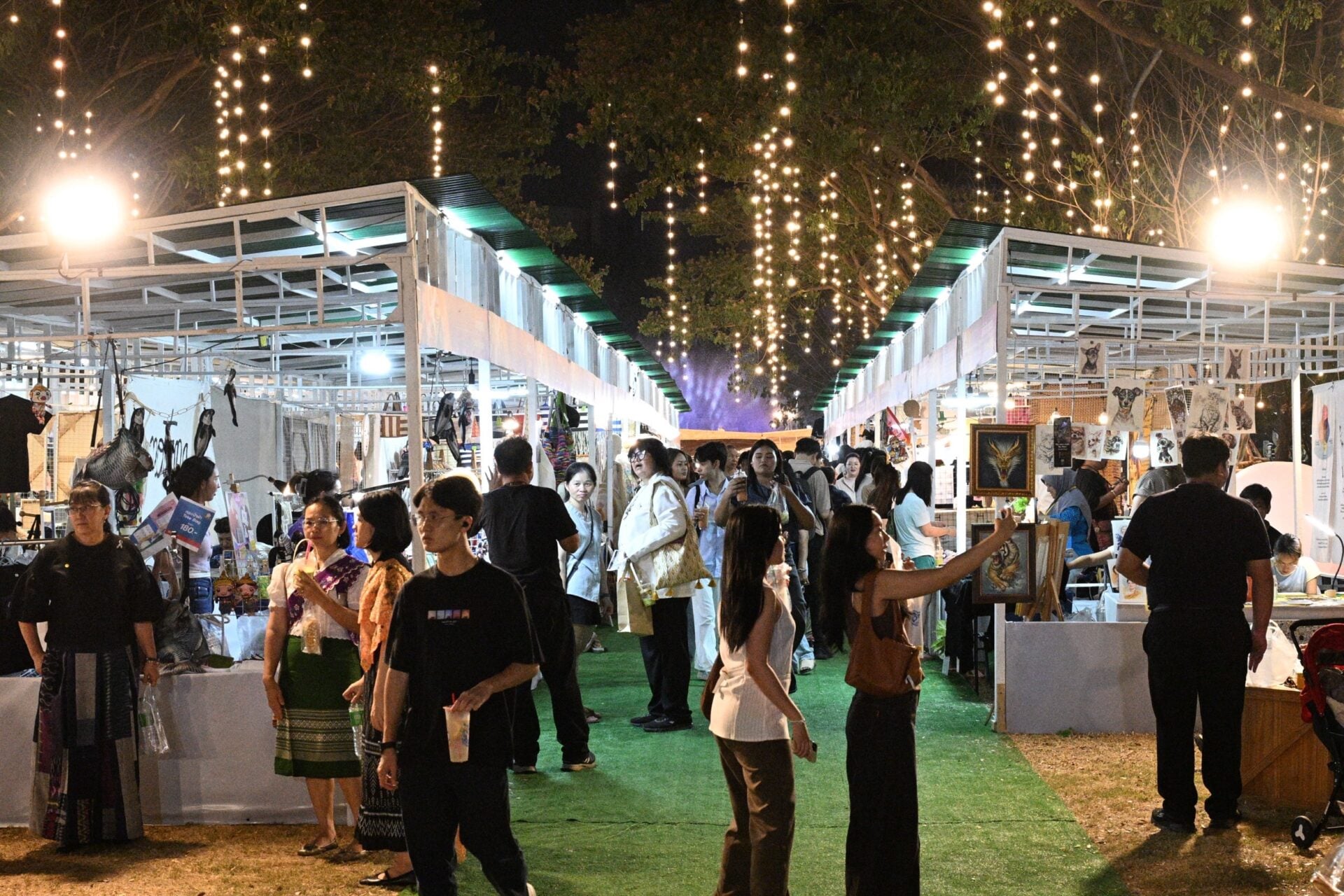 เมื่อเดินเข้ามา จะได้พบกับนิทรรศการ “ฉลอง 244 ปี กรุงรัตนโกสินทร์” ในรูปแบบ Outdoor Multimedia Exhibition ที่ผสมผสานเรื่องราวประวัติศาสตร์เข้ากับเทคโนโลยีสมัยใหม่ รวมถึงกิจกรรมถ่ายภาพชุดไทยด้วย AI และโซนตลาดวัฒนธรรมที่รวมของกิน ของใช้ และผลิตภัณฑ์ท้องถิ่นไว้ให้เดินช้อปชิมแบบเพลิน ๆ บรรยากาศภายในงานคึกคักไปด้วยกิจกรรมหลากหลาย ทั้งเวิร์กช็อป สาธิตอาหารและภูมิปัญญาไทย การละเล่นหาชมยากอย่างหมากรุกคน หนังใหญ่ หรือรำมวยโบราณ ควบคู่กับการแสดงศิลปวัฒนธรรมและดนตรีร่วมสมัยจากทั้งเยาวชนและศิลปินชื่อดังที่สลับขึ้นเวทีสร้างสีสันตลอดงาน