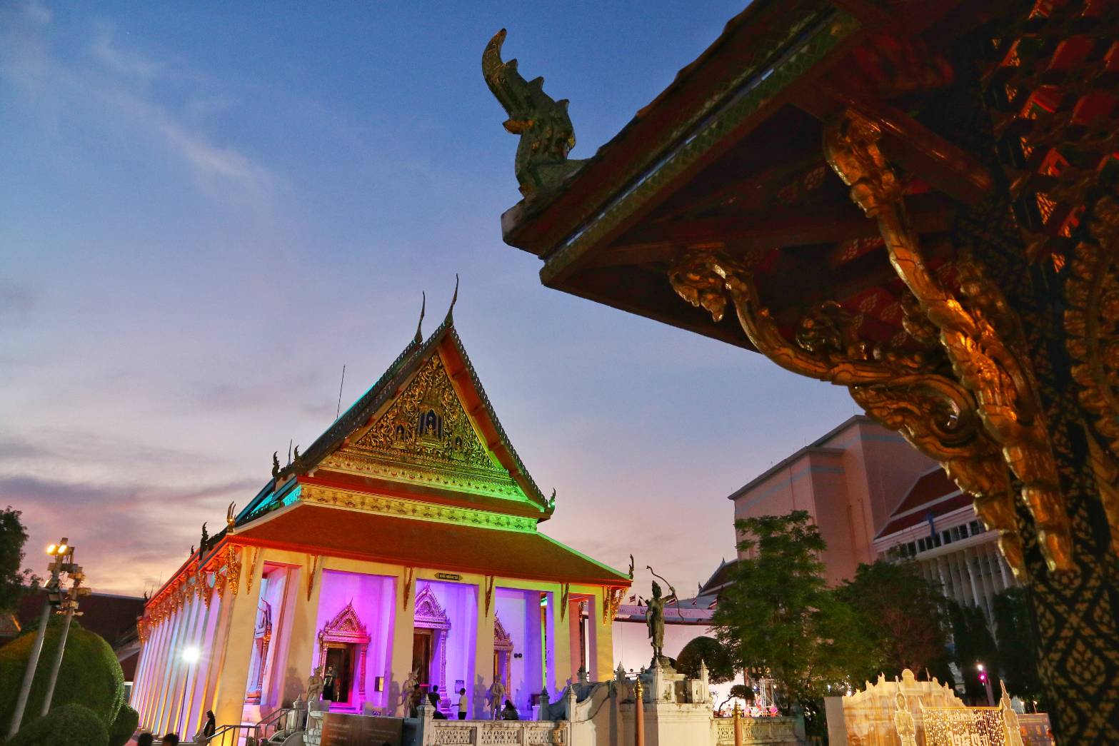 จุดหมายแรกที่พิพิธภัณฑสถานแห่งชาติ พระนคร หรือวังหน้า พื้นที่ประวัติศาสตร์สำคัญที่สร้างขึ้นพร้อมพระบรมมหาราชวังตั้งแต่ปี พ.ศ. 2325 ก่อนพัฒนาเป็นพิพิธภัณฑสถานแห่งชาติในปี พ.ศ. 2477 ที่รวบรวมมรดกศิลปวัฒนธรรมไทยไว้อย่างทรงคุณค่า ในยามค่ำคืนที่นี่ได้เปลี่ยนเป็นพื้นที่ท่องเที่ยวสุดคึกคักในกิจกรรม “Rattanakosin Royal Night รัตนโกสินทร์ วังเรืองรอง” ชวนเดินวัง ชมพิพิธภัณฑ์ ดูหนัง ดูโชว์ และชิมของอร่อย ท่ามกลางบรรยากาศงดงามยามค่ำ