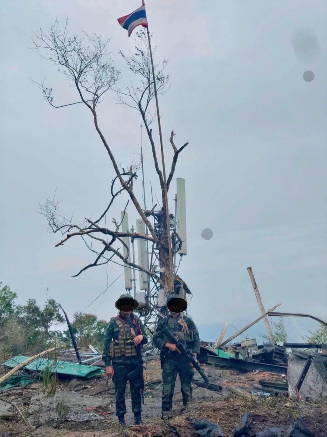 ทหารไทยห้าวหาญยึดภูมะเขือได้แล้ว "เอฟ 16" จับมือ "กริพเพน" ทิ้งไข่ถล่มยับ ศพทหารกัมพูชาเกลื่อน นายพลเขมรดับ ถูกลูกปืนใหญ่ ยึดอาวุธได้จำนวนมาก ทำลายเสาเรดาร์ บันไดเหล็กเกลี้ยง ก่อนชักธงไตรรงค์ขึ้นยอดเสา ประกาศเป็นดินแดนประเทศไทย