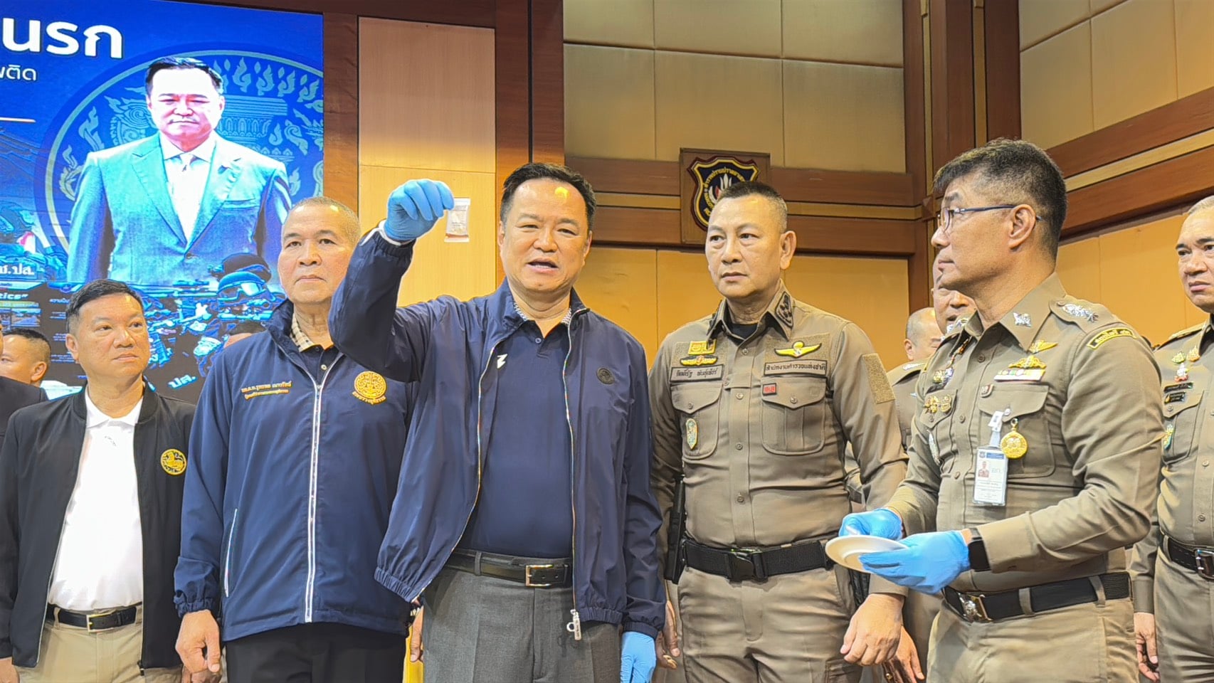 นายกฯ กล่าวว่า วันนี้ พล.ต.อ.สำราญ นวลมา รองผู้บัญชาการตำรวจแห่งชาติ ได้แจ้งของกลางตรงนี้เป็นส่วนที่จับได้ตั้งแต่รัฐบาลของตนเข้ามาบริหารประเทศคือตั้งแต่วันที่ 19 กันยายนที่ผ่านมา ต้องขอขอบคุณในความร่วมมือของทุกฝ่าย เราไม่ได้จับแค่นี้ เราจะดำเนินการต่อไป และหวังว่าในขณะนี้ที่ตนมีความรับผิดชอบทั้งในตำแหน่งนายกฯ และ รมว.มหาดไทย โดยความสัมพันธ์ความผูกพันในทางส่วนตัวกับคณะผู้บริหารสำนักงานตำรวจแห่งชาติ