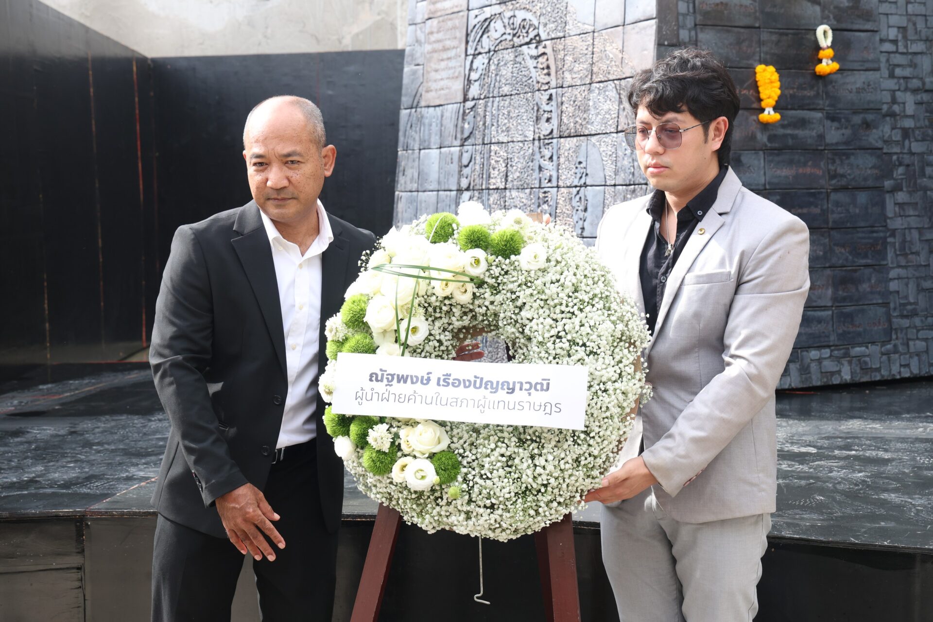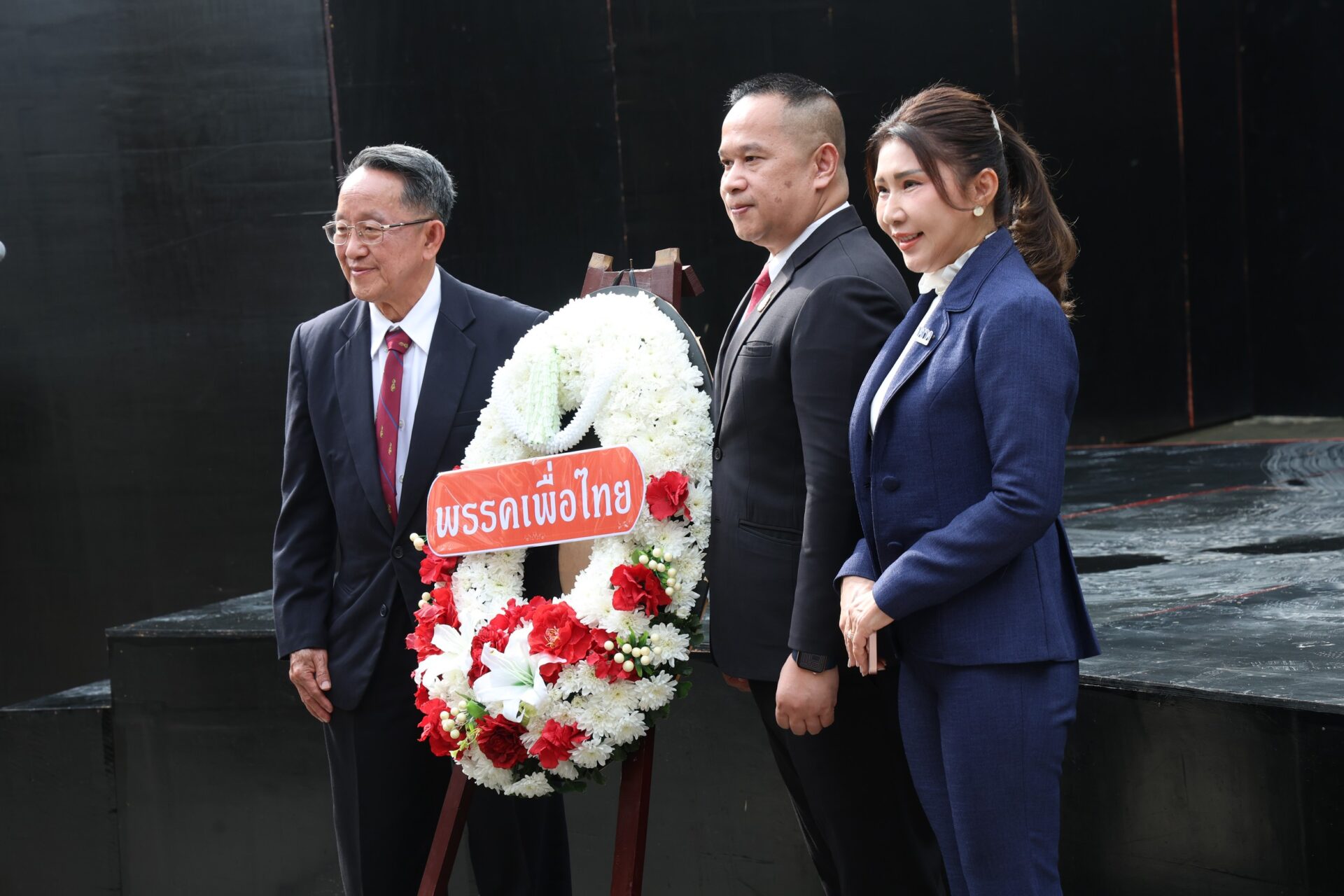 ด้าน นพ.เชิดชัย ตันติศิรินทร์, นายอนุสรณ์ เอี่ยมสะอาด และ น.ส.เพ็ญชิสา หงษ์อุปถัมภ์ชัย สส.บัญชีรายชื่อ ตัวแทนพรรคเพื่อไทย ร่วมวางพวงหรีดรำลึกเหตุการณ์ 14 ตุลาคม 2516 โดย นพ.เชิดชัย ในฐานะรองประธานคณะกรรมาธิการวิสามัญพิจารณาร่างพระราชบัญญัติ (พ.ร.บ.) สร้างเสริมสังคมสันติสุข เปิดเผยว่า ร่าง พ.ร.บ.ส่งเสริมสังคมสันติสุข กำลังจะเข้าสภาเพื่อพิจารณาวาระ 2-3 เร็วๆ นี้ จะมีนิรโทษกรรมเหตุการณ์ตั้งแต่เสื้อเหลือง เสื้อแดง กปปส. ม็อบราษฎรปี 63-64 ฝากถึงญาติวีรชนว่า โปรดติดตามและให้กำลังใจ เพื่อให้กฎหมายสำเร็จด้วยดี