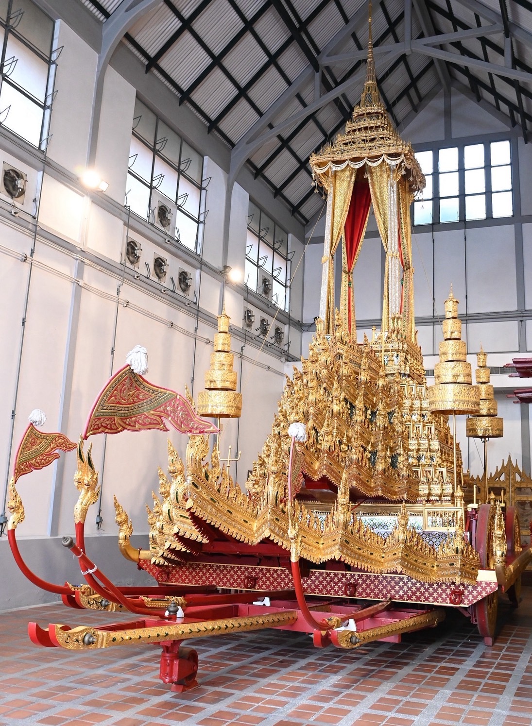 เวลา 08.00 น. สมเด็จพระกนิษฐาธิราชเจ้า กรมสมเด็จพระเทพรัตนราชสุดาฯ สยามบรมราชกุมารี เสด็จพระราชดำเนินไปทรงประกอบพิธีบวงสรวง เพื่อบูรณปฏิสังขรณ์ราชรถ พระยานมาศและเครื่องประกอบ ในพระราชพิธีถวายพระเพลิงพระบรมศพฯ ณ พิพิธภัณฑสถานแห่งชาติ พระนคร โดยมีท่านผู้หญิงสิริกิติยา เจนเซน, นายอนุทิน ชาญวีรกูล นายกรัฐมนตรี, นายบวรศักดิ์ อุวรรณโณ รองนายกรัฐมนตรี, น.ส.ซาบีดา ไทยเศรษฐ์ รัฐมนตรีว่าการกระทรวงวัฒนธรรม, นางยุพา ทวีวัฒนะกิจบวร ปลัดสำนักนายกรัฐมนตรี, นายประสพ เรียงเงิน ปลัดกระทรวงวัฒนธรรม, นายพนมบุตร จันทรโชติ อธิบดีกรมศิลปากร เฝ้าฯ รับเสด็จ