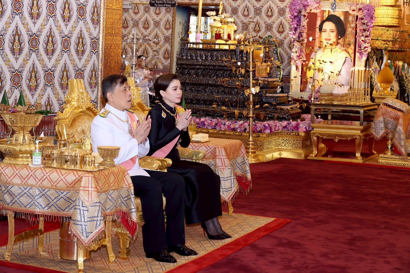 พระบาทสมเด็จพระเจ้าอยู่หัว ทรงจุดธูปเทียนเครื่องราชสักการะทองลงยาราชาวดี และทรงจุดธูปเทียนเครื่องทองน้อย สมเด็จพระนางเจ้าฯ พระบรมราชินี ทรงจุดธูปเทียนเครื่องราชสักการะทองลงยารอง และทรงจุดธูปเทียนเครื่องทองน้อยที่หน้าพระโกศพระบรมศพ สมเด็จพระนางเจ้าสิริกิติ์ พระบรมราชินีนาถ พระบรมราชชนนีพันปีหลวง จากนั้น พระบาทสมเด็จพระเจ้าอยู่หัว ทรงจุดธูปเทียนเครื่องนมัสการพานทองสองชั้นบูชาพระพุทธรูปประจำพระชนมวารที่หน้าพระแท่นพระนพปฎลมหาเศวตฉัตร ทรงกราบ แล้วประทับพระราชอาสน์ สมเด็จพระอริยวงศาคตญาณ สมเด็จพระสังฆราช สกลมหาสังฆปริณายก ถวายศีล