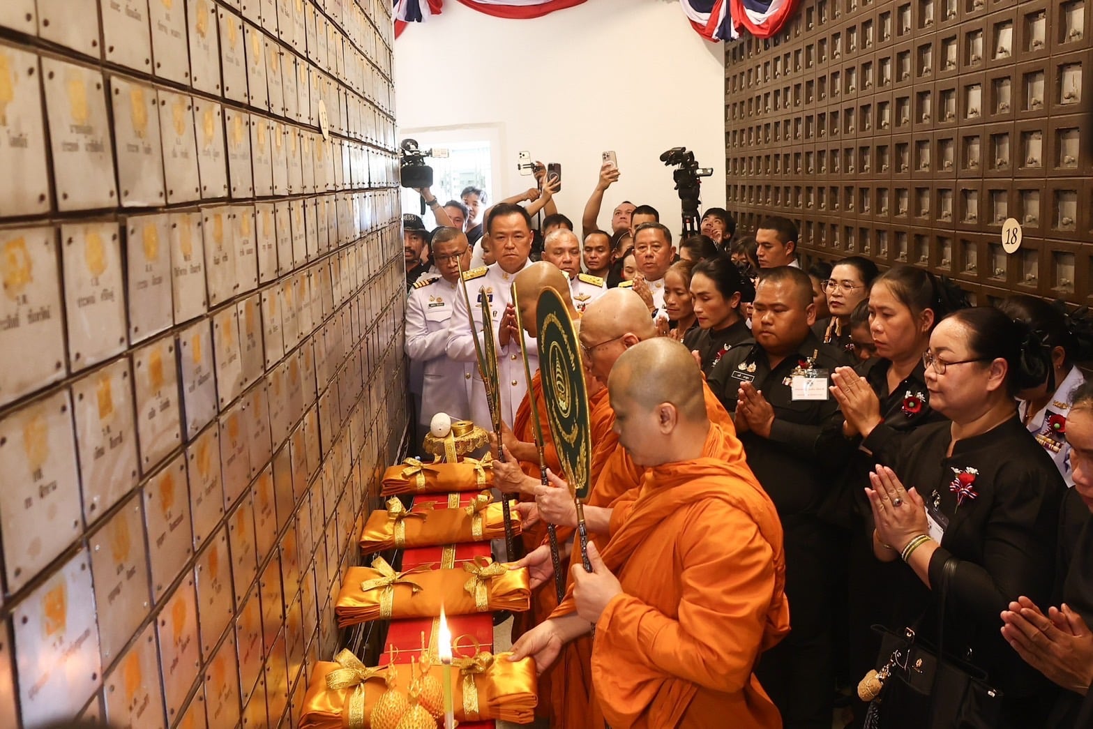 จากนั้นในเวลา 09.00 น. นายอนุทิน ชาญวีรกูล นายกรัฐมนตรีและ รมว.มหาดไทย เป็นประธานในพิธีบรรจุอัฐิทหารที่เสียชีวิต จำนวน 42 นาย พร้อมด้วย พล.ท.อดุลย์ บุญธรรมเจริญ รัฐมนตรีช่วยว่าการกระทรวงกลาโหม, คณะผู้บริหารระดับสูงขององค์การทหารผ่านศึกฯ และครอบครัวของกำลังพลผู้เสียสละเข้าร่วมพิธี ซึ่งการบรรจุอัฐิจะเรียงตามตัวอักษรพยัญชนะไทย จำนวน 41 นาย ส่วนอีก 1 นาย ซึ่งนับถือศาสนาอิสลาม ไม่ได้มีการบรรจุอัฐิ แต่มีการติดชื่อร่วมกับทหารนายอื่นด้วย