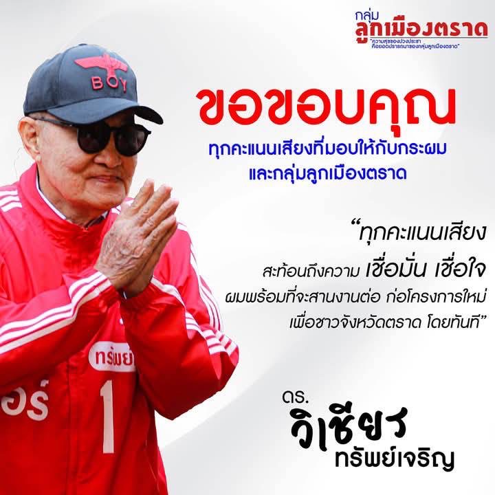 “ ในการเลือกตั้งครั้งนี้ ผู้ได้รับการเลือกตั้งยังจะไม่สามารถดำรงตำแหน่งได้ เพราะทางตนเองได้ร้องเรียนกับกก.ต.ตราดไว้หลายเรื่อง ทั้งผู้ชนะนายกอบจ.ตราดและสมาชิกสภาอบจ.ตราดที่ได้รับเลือกตั้งมาแล้ว แต่มีประวัติเสื่อมเสียและไม่เหมาะกับการดำรงตำแหน่งทางการเมือง” นายเจริญ ระบุ