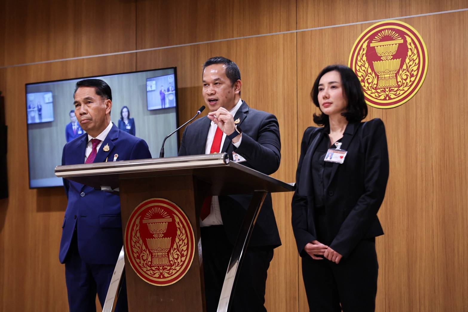 3 เม.ย. 2568 - เวลา 16.40 น. ที่รัฐสภา พรรคเพื่อไทย นำโดย นายสุทิน คลังแสง สส.บัญชีชื่อรายชื่อ ,นายอนุสรณ์ เอี่ยมสะอาด บัญชีชื่อรายชื่อ และนางสาวลิณธิภรณ์ วริณวัชรโรจน์ สส.บัญชีชื่อรายชื่อ ร่วมแถลงภายหลังที่ประชุมสภาผู้แทนราษฎรมีมติเลื่อนระเบียบวาระร่างพระราชบัญญัติ (พ.ร.บ.) การประกอบธุรกิจสถานบันเทิงครบวงจร หรือเอ็นเตอร์เทนเมนต์คอมเพล็กซ์ เป็นเรื่องด่วนที่จะพิจารณา ในวันที่ 9 เม.ย.