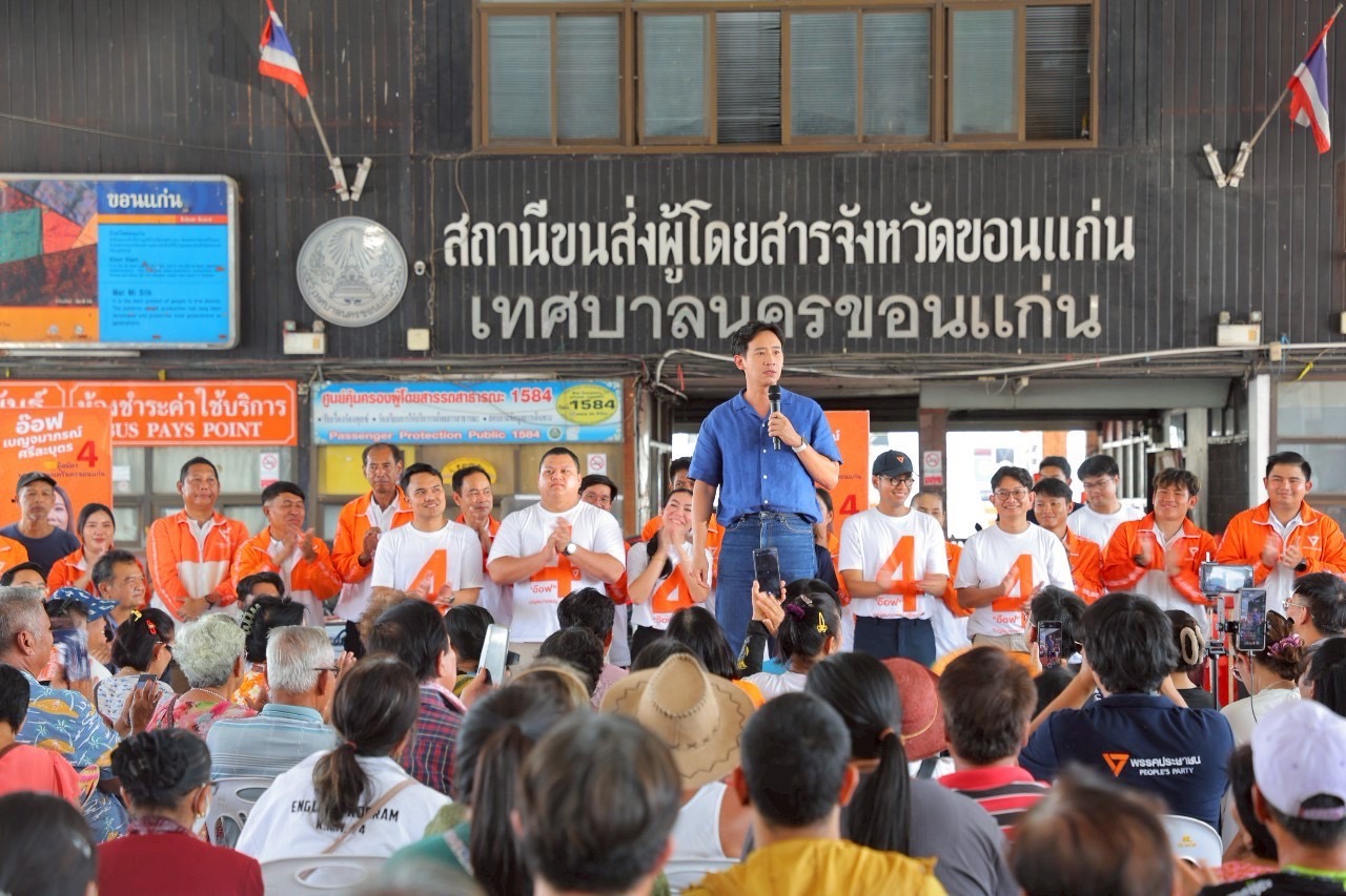 4 พ.ค.2568 – นายพิธา ลิ้มเจริญรัตน์ อดีตหัวหน้าพรรคก้าวไกล ในฐานะผู้ช่วยหาเสียงพรรคประชาชน ลงพื้นที่ปราศรัยช่วยนางสาวเบญจมาภรณ์ ศรีละบุตร ผู้สมัครนายกเทศมนตรีเทศบาลนครขอนแก่น ที่สถานีขนส่งจังหวัดขอนแก่นแห่งเก่า