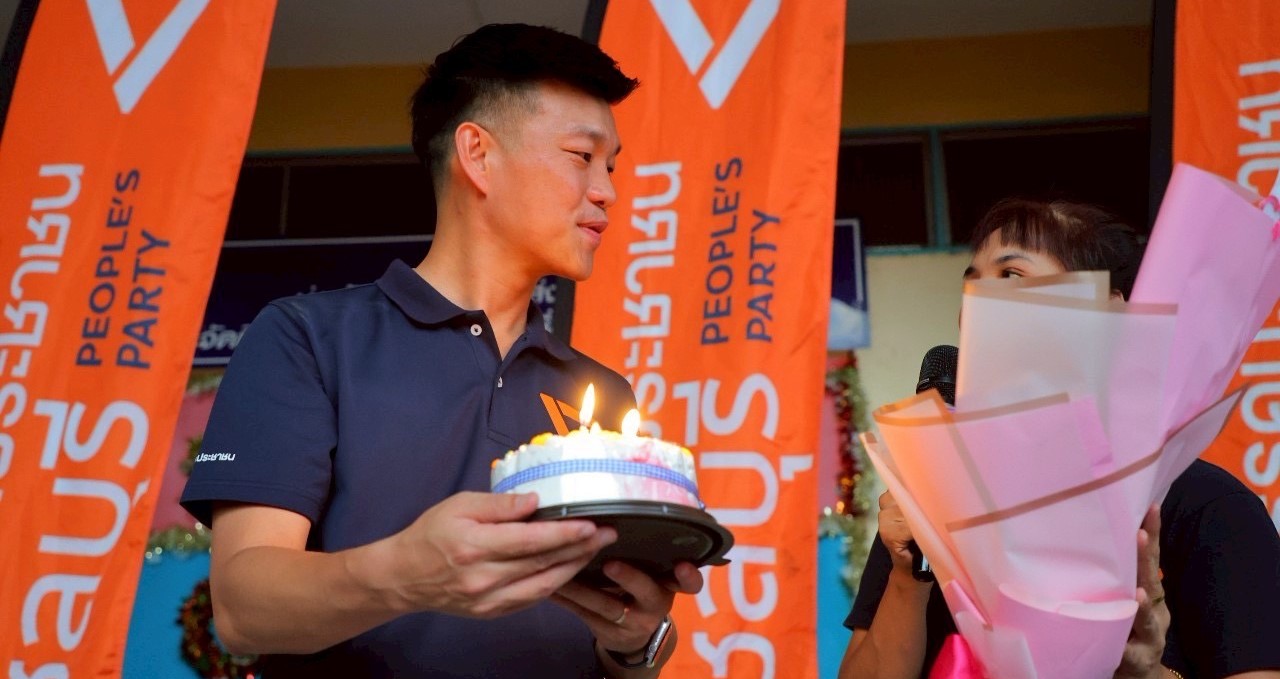 18 พ.ค.2568-ที่วัดรังษีสุทธาวาส จังหวัดชลบุรี พรรคประชาชน นำโดย นายณัฐพงษ์ เรืองปัญญาวุฒิ หัวหน้าพรรค , สส.ชลบุรี พร้อมด้วยทีมงานจังหวัด จัดเวทีพบปะ รับสมัครสมาชิก และรับฟังความคิดเห็นจากประชาชนชาวศรีราชา ซึ่งเป็นพื้นที่เขตของ น.ส.กฤษฎิ์ ชีวะธรรมานนท์ สส.พรรคประชาชนที่ประกาศแยกทางขอไปอยู่พรรคกล้าธรรม โดยบรรยากาศเป็นไปด้วยความคึกคัก มีประชาชนที่เป็นสมาชิกพรรคและไม่เป็นสมาชิกเดินทางมาร่วมพบปะนายณัฐพงษ์ ซึ่งช่วงก่อนกำหนดการ ได้มีแฟนคลับได้นำเค้กช็อกโกแลต เป็นรูปโลโก้พรรคประชาชนมาเซอร์ไพรส์วันเกิดให้นายณัฐพงษ์ นอกจากนี้ ยังมีแฟนคลับที่อยู่ต่างประเทศ ใช้ชื่อว่ากลุ่มส้ม USA ส่งดอกไม้และเค้กมาอวยพรวันเกิดด้วย