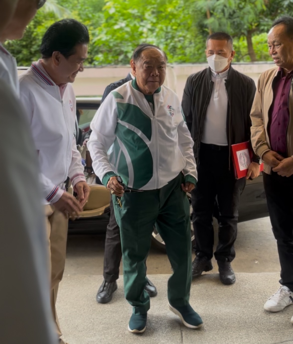 27 พฤษภาคม 2568 - ที่พรรคพลังประชารัฐ พล.อ. ประวิตร วงษ์สุวรรณ สส.บัญชีรายชื่อ และหัวหน้าพรรคพลังประชารัฐ เดินทางมาเป็นประธานการประชุมพรรคเป็นครั้งแรก หลังลื่นล้มบริเวณบันไดอุโบสถวัดพระเชตุพนวิมลมังคลาราม เมื่อวันที่ 19 พ.ค.ที่ผ่านมา เพื่อกำหนดทิศทางของพรรคก่อนที่สภาผู้แทนราษฎร จะมีการพิจารณาร่างพระราชบัญญัติ (พ.ร.บ.) งบประมาณรายจ่ายประจำปีงบประมาณ พ.ศ. 2569 ในกรอบวงเงิน 3.78 ล้านล้านบาท ระหว่างวันที่ 28-30 พ.ค.นี้ โดย พล.อ. ประวิตร มีสีหน้าสดใส ยิ้มรับบรรดา สสผและแกนนำของพรรคที่มารอต้อนรับ ทั้งนี้ วันนี้ พล.อ.ประวิตร ได้สวมชุดวอร์มสีเขียว ปักโลโก้พรรคพลังประชารัฐใหม่ ที่เปลี่ยนเมื่อวันที่ 27 เม.ย.ที่ผ่านมา