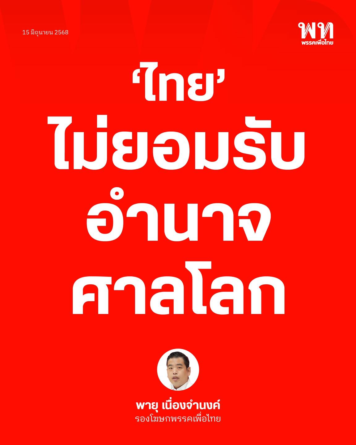 15 มิ.ย. 2568 – นายพายุ เนื่องจำนงค์ รองโฆษกฯ พรรคเพื่อไทย เริ่มต้นแถลงข่าวประจำสัปดาห์ ด้วยเรื่องความสัมพันธ์ประเทศไทยและกัมพูชา โดยพรรคเพื่อไทยย้ำความสำคัญของคณะกรรมาธิการเขตแดนร่วมไทย-กัมพูชา หรือ JBC เป็นกลไกหลักร่วมไทย-กัมพูชา ใช้ในการแก้ไขปัญหาอย่างสันติ โดยมีหลักการเจรจาและการเคารพในอธิปไตยซึ่งกันและกัน แม้ว่าการประชุม JBC ครั้งล่าสุดจะยังไม่สามารถนำไปสู่การยุติปัญหาถาวรได้แต่เป็นสัญญาณที่ดี สำหรับทั้งสองฝ่ายที่ยังพร้อมที่จะใช้เวทีการเจรจาแทนการใช้ความรุนแรง