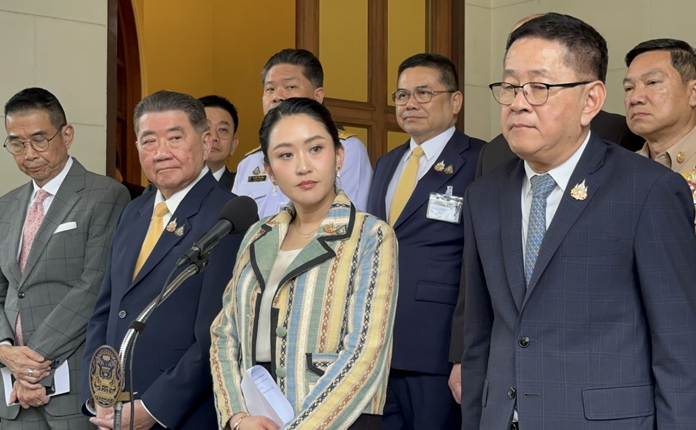 23 มิถุนายน 2568 - เมื่อเวลา 15.20 น. ที่ตึกภักดีบดินทร์ ทำเนียบรัฐบาล น.ส.แพทองธาร ชินวัตร นายกรัฐมนตรี แถลงภายหลังการประชุมติดตามมาตรการแก้ไขปัญหาอาชญากรรมข้ามชาติ พร้อมด้วย พล.อ.ทรงวิทย์ หนุนภักดี ผู้บัญชาการทหารสูงสุด พล.ต.อ.ธัชชัย ปิตะนีละบุตร จเรตำรวจแห่งชาติ และหน่วยงานที่เกี่ยวข้อง