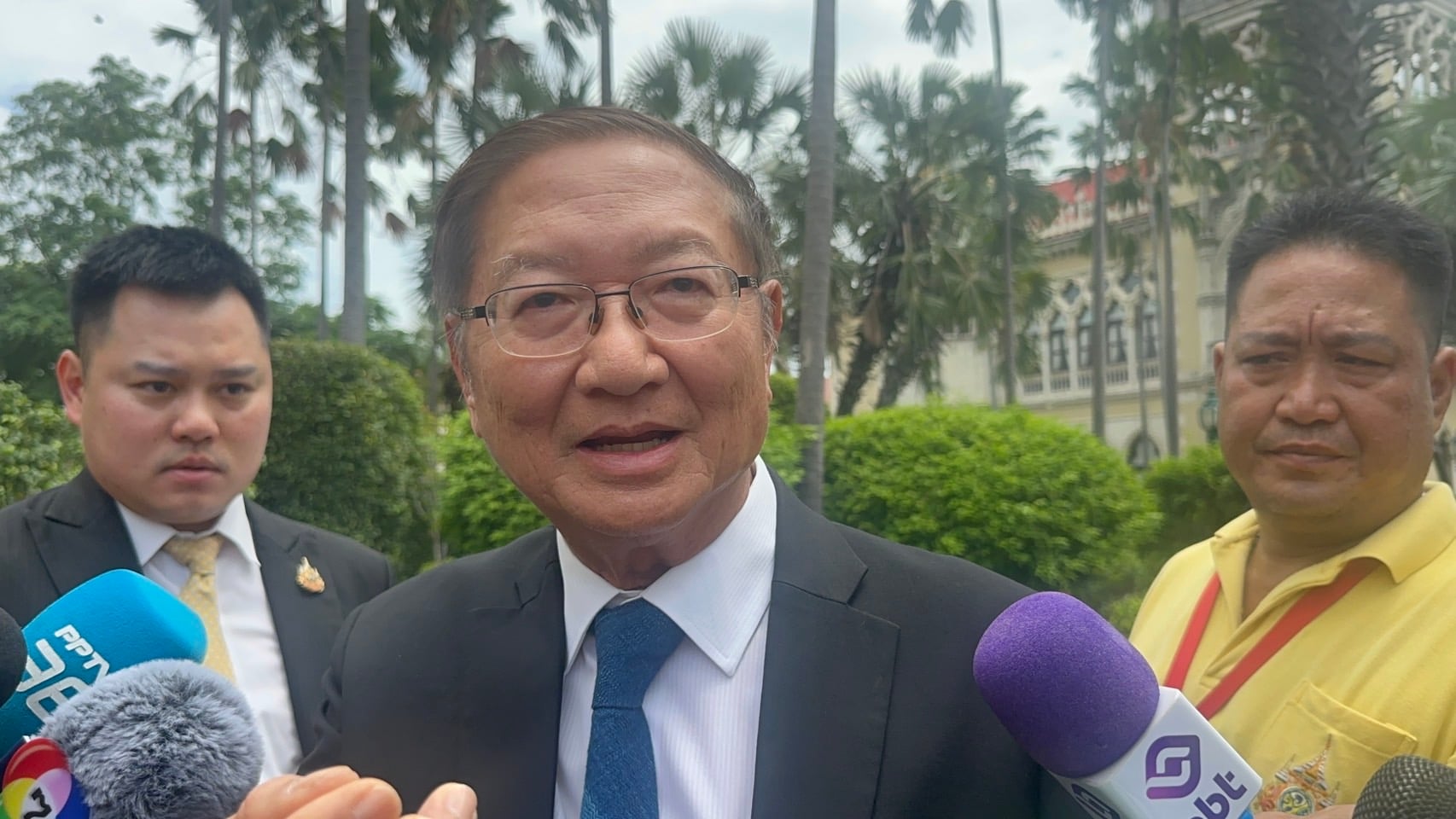 14 ก.ค.2568-นพ.พรหมินทร์ เลิศสุริย์เดช เลขาธิการนายกรัฐมนตรี กล่าวถึงกรณีน.ส.แพทองธาร ชินวัตร นายกรัฐมนตรีและ รมว.วัฒนธรรม จะเลื่อนการชี้แจงต่อศาลรัฐธรรมนูญที่จะครบกำหนด 15 วัน หลังศาลรับพิจารณาคดีปมคลิปเสียง และสั่งหยุดปฏิบัติหน้าที่ว่า ขณะนี้กำลังเตรียมการอยู่ ถ้าไม่ทันก็ต้องมีการขอเลื่อน