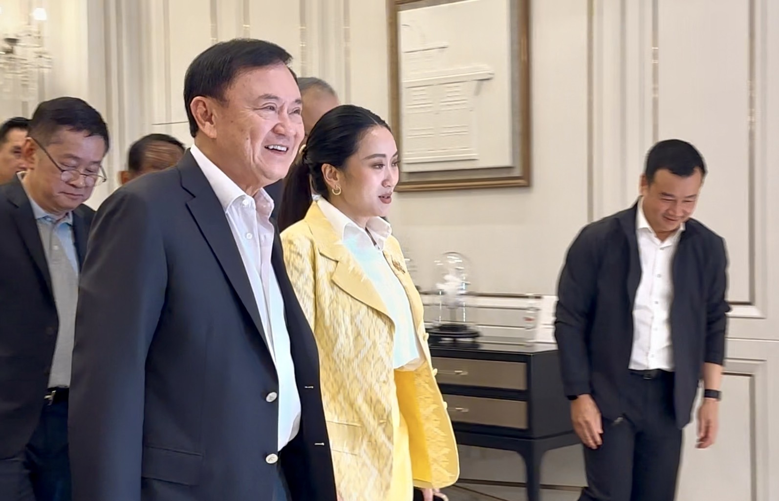 ต่อมาเวลา 17.58 น. นายทักษิณ ชินวัตร อดีตนายกรัฐมนตรี เดินทางถึงโดยมีน.ส.แพทองธาร นายกรัฐมนตรี และรมว.วัฒนธรรม ในฐานะ หัวหน้าพรรคเพื่อไทยรอต้อนรับ อาทิ นายภูมิธรรม เวชยชัย รองนายกรัฐมนตรี และรมว.มหาดไทย ในฐานะแกนนำพรรคเพื่อไทย นายสรวงศ์ เทียนทอง รมว.การท่องเที่ยวและกีฬา ในฐานะเลขาธิการพรรคเพื่อไทย นายสมศักดิ์ เทพสุทิน รมว.สาธารณสุข นายจุลพันธ์ อมรวิวัฒน์ รมช.คลัง ในฐานะรองหัวหน้าพรรคเพื่อไทย นายพงศ์กวิน จึงรุ่งเรืองกิจ รมว.แรงงาน น.ส.สุดาวรรณ หวังศุภกิจโกศล รมว.อุดมศึกษา วิทยาศาสตร์ วิจัยและนวัตกรรม(อว.) นางมนพร เจริญศรี รมช.คมนาคม นายสุรพงษ์ ปิยะโชติรมช.คมนาคม น.ส.ลิณธิภรณ์ วริณวัชรโรจน์ รมช.ศึกษาธิการ นายเผ่าภูมิ โรจนสกุล รมช.คลัง น.ส.จิราพร สินธุไพร รมต.ประจำสำนักนายกรัฐมนตรี