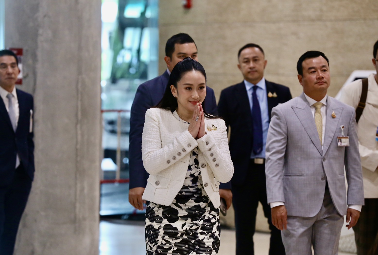 23 ก.ค.2568 - เมื่อเวลา 09.50 น. น.ส.แพทองธาร ชินวัตร นายกรัฐมนตรีและรัฐมนตรีว่าการกระทรวงวัฒนธรรม ในฐานะหัวหน้าพรรคเพื่อไทย (พท.) เดินทางเข้าสภาผู้แทนราษฎรเพื่อพบปะและรับฟังปัญหาจาก สส.ของพรรคที่ได้รับการสะท้อนมาจากประชาชนในพื้นที่ โดยนายกฯมีสีหน้ายิ้มแย้มแจ่มใส